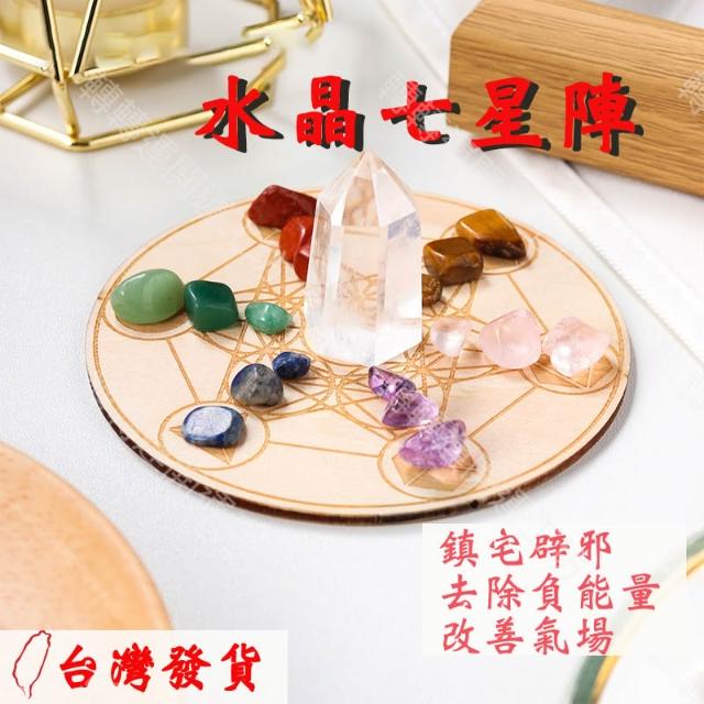 🔥轉轉運台灣現貨🔥 水晶 七星陣 送木盤底座 晶石能量 風水擺件 流水擺飾 風水