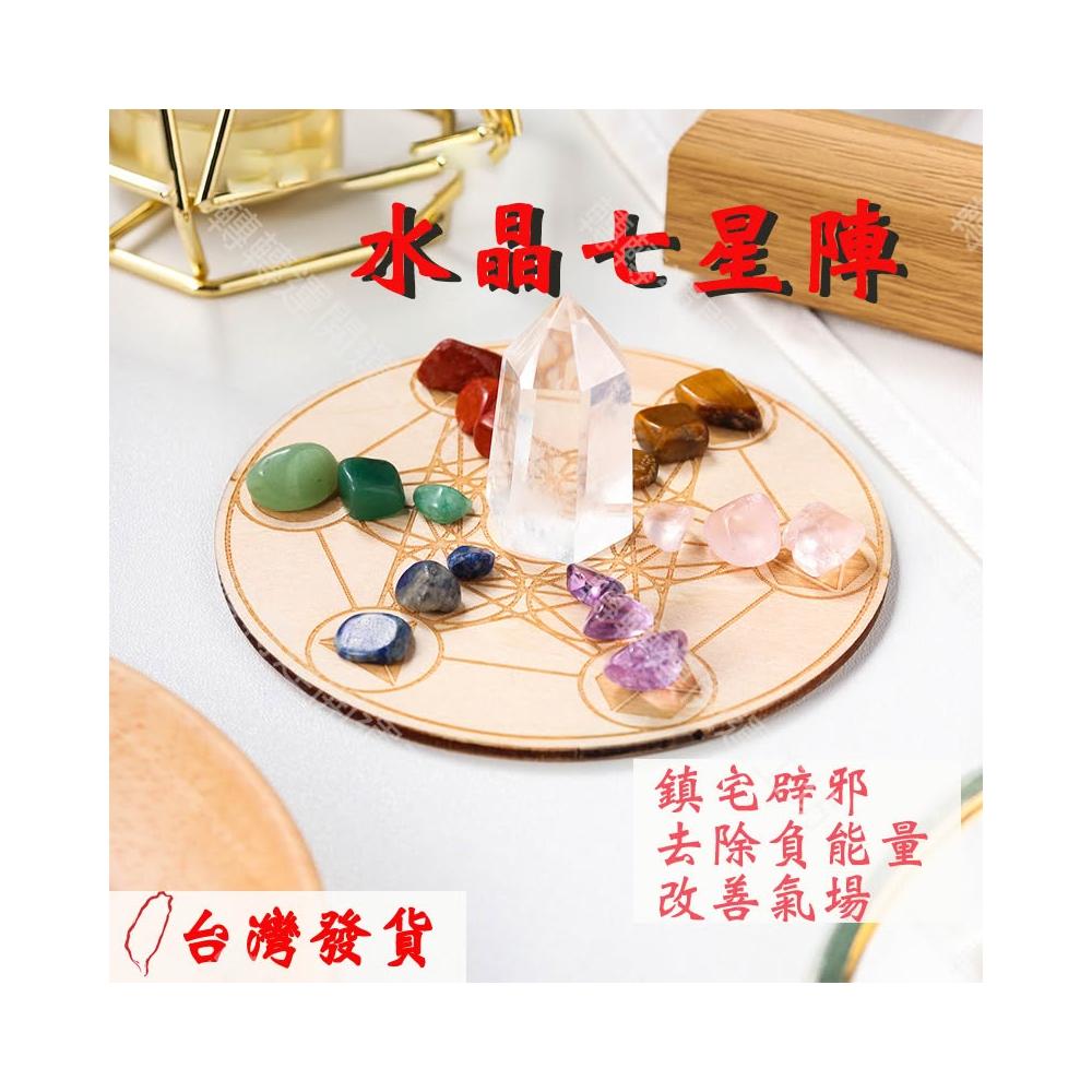🔥轉轉運台灣現貨🔥 水晶 七星陣 送木盤底座 晶石能量 風水擺件 流水擺飾 風水