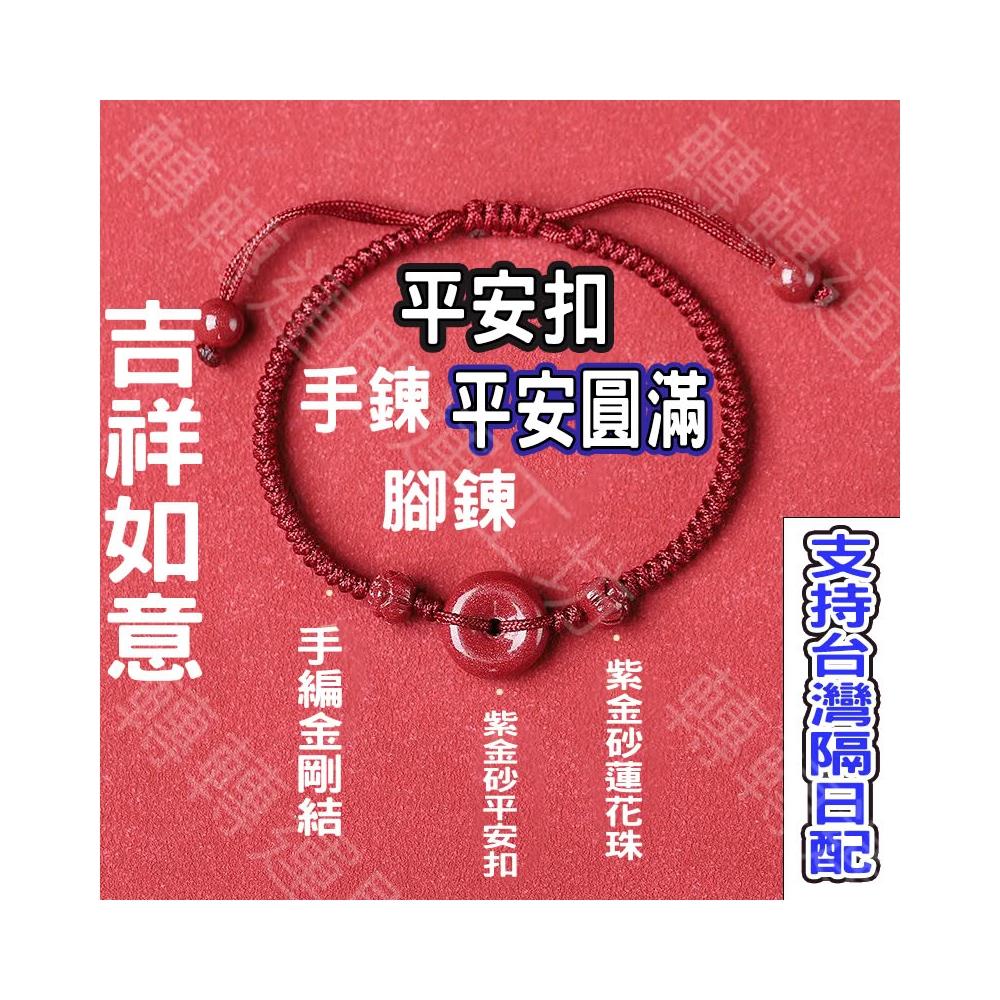 🔥轉轉運台灣現貨隔日配🌲平安扣 手鍊 腳鍊 四葉草 好運 平安 圓滿 可調節 金剛結 紫金砂 紅繩 好緣份