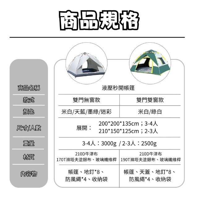 3-4人全自動秒開液壓帳篷(速開帳篷/露營帳篷/秒開帳/簡易帳篷/快速帳篷/野餐帳篷/自動帳篷)