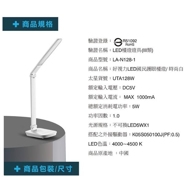 太星電工好視力LED國民護眼檯燈5W/時尚白 UTA128W