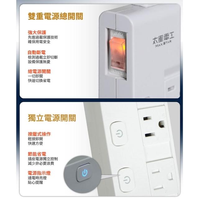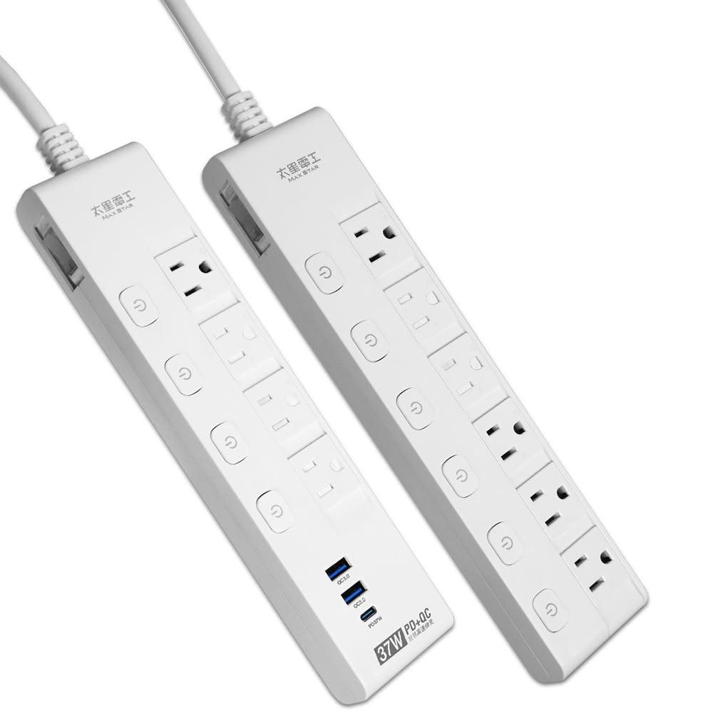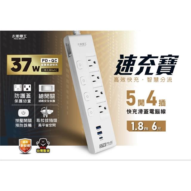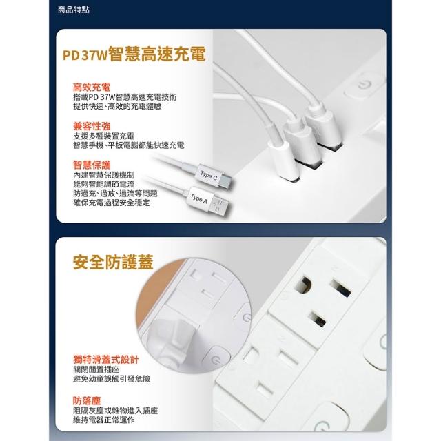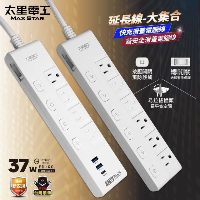 太星電工 PD快充線USB-C+滑蓋多孔延長線|5開4插 / 7開6插|6尺 / 9尺|滑蓋安全設計
