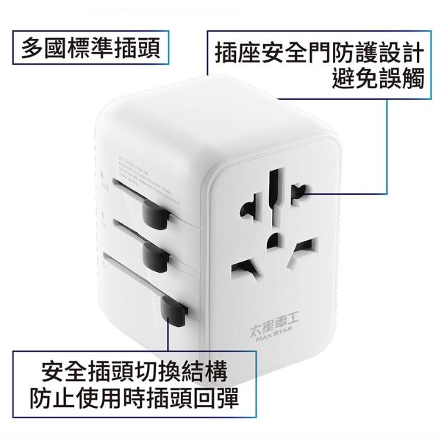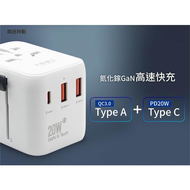 太星電工氮化鎵PD20W旅行用插座/3USB(多國轉換) AA3031