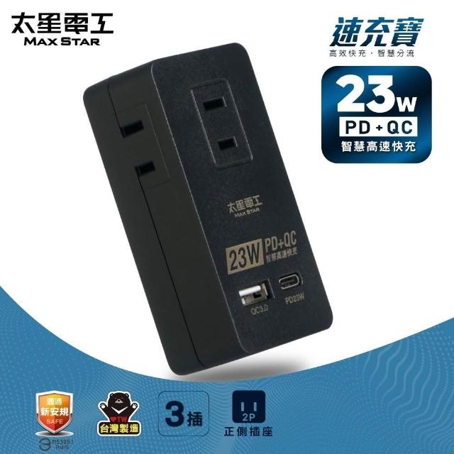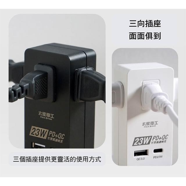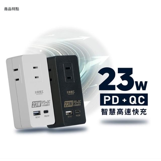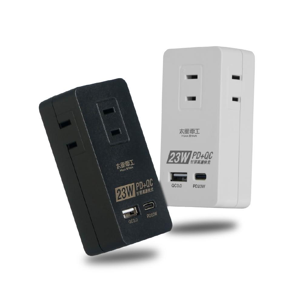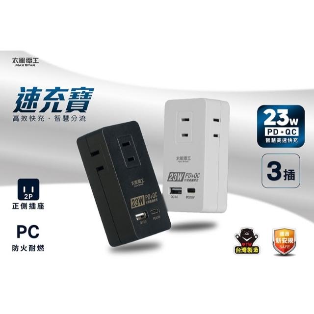 太星電工速充寶PD23W三插分接式插座/2P(黑色/白色) AE335B/AE335W