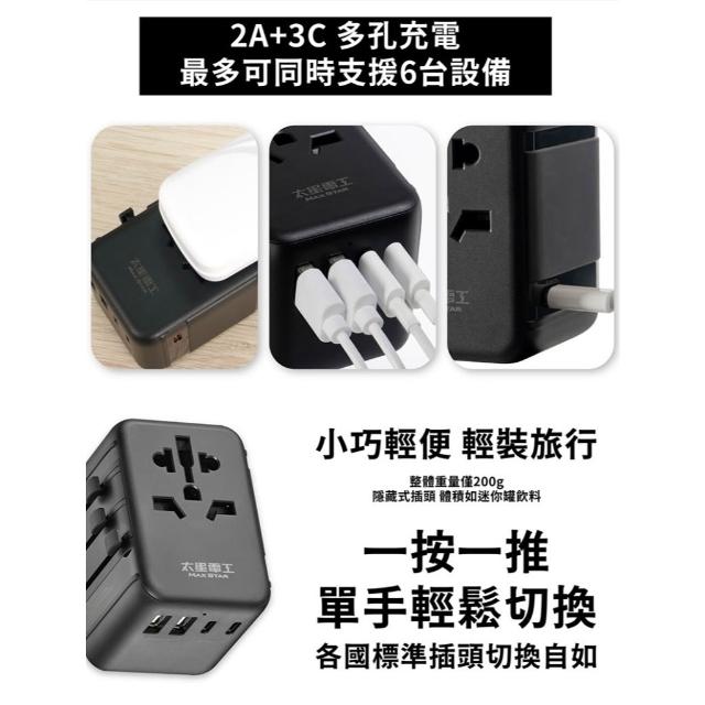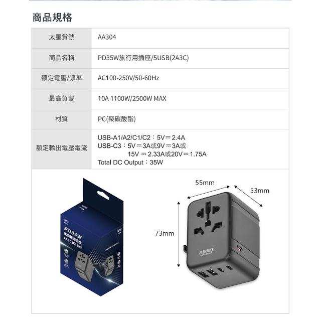 太星電工PD35W旅行用插座/5USB(2A3C) 出國旅行/手機充電/行充/平板 AA304