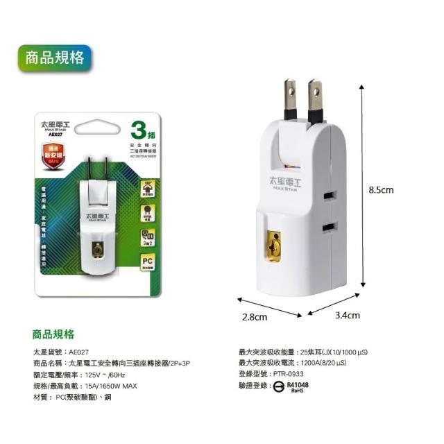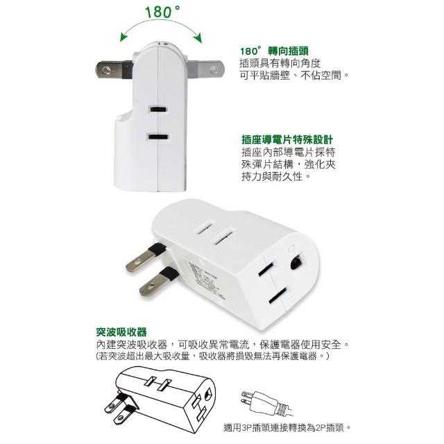 太星電工安全轉向三插座轉接器/2P+3P AE027