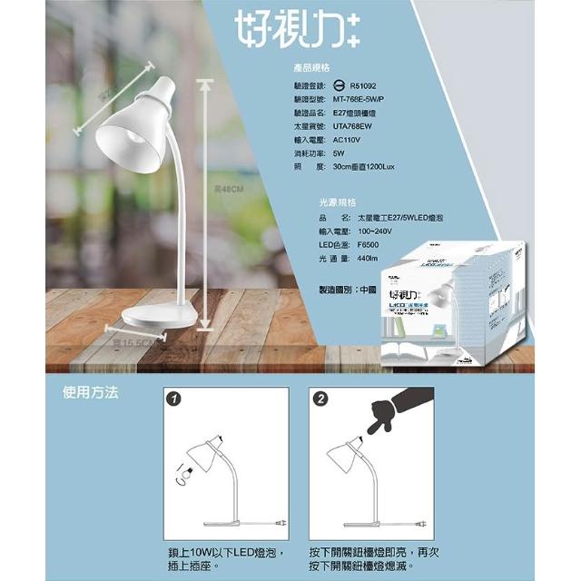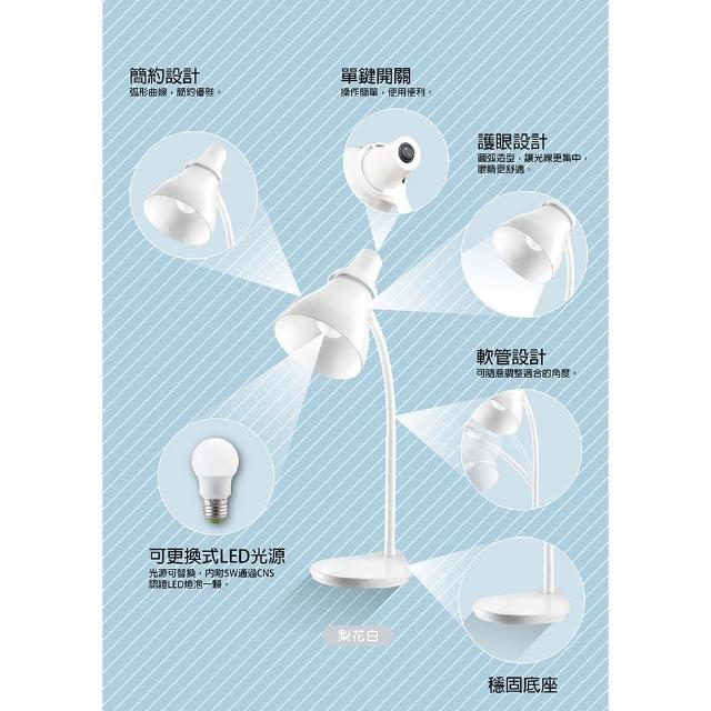太星電工好視力LED學生護眼檯燈/梨花白(內附5W LED燈泡) UTA768EW(超商限1台,超過請分2單)
