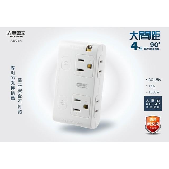 太星電工大間距2P+3P二開四插分接式旋轉插座 AE034