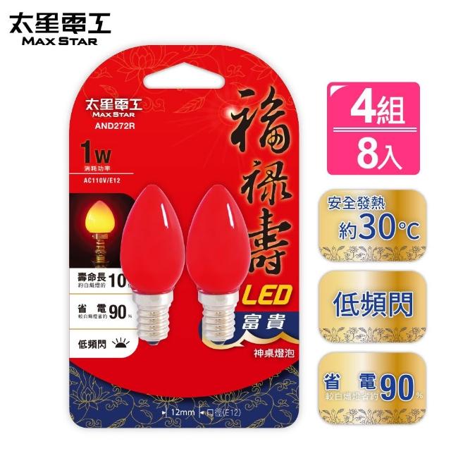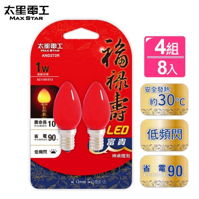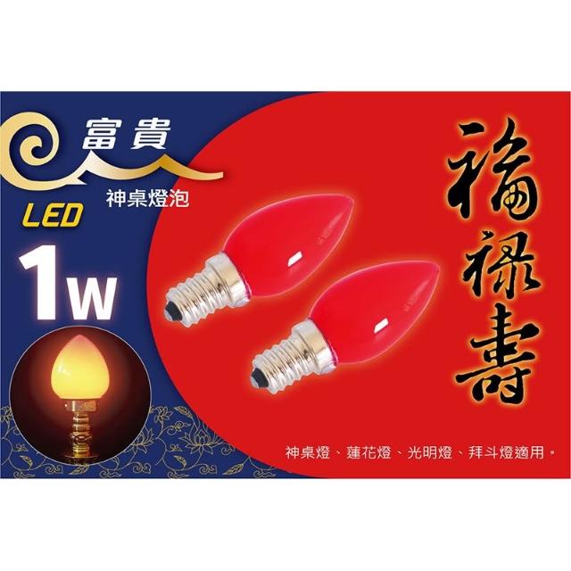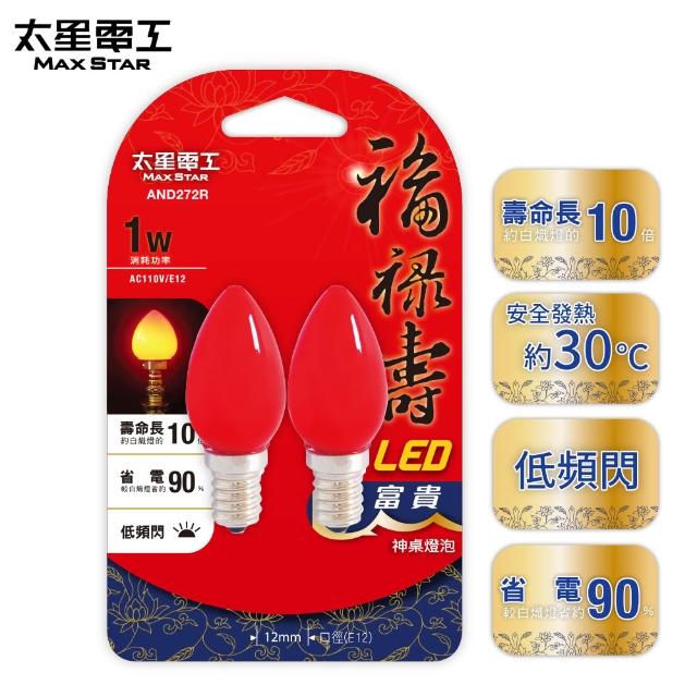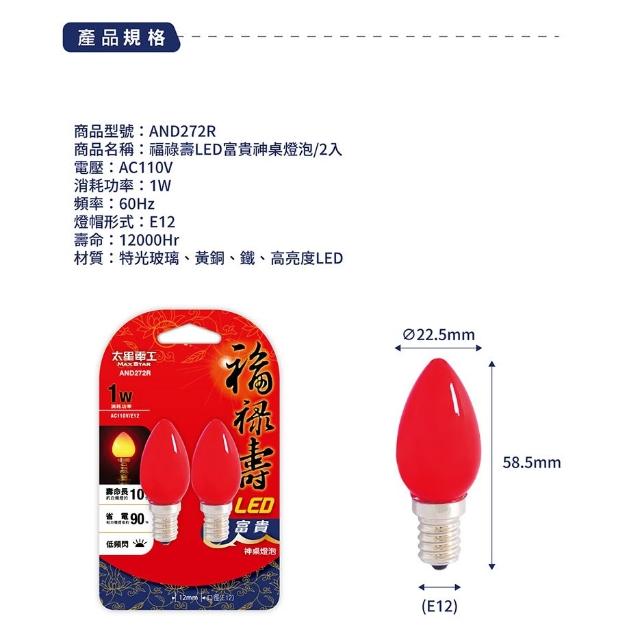 太星電工福祿壽LED富貴神明燈泡E12/1W/紅光/2入AND272R