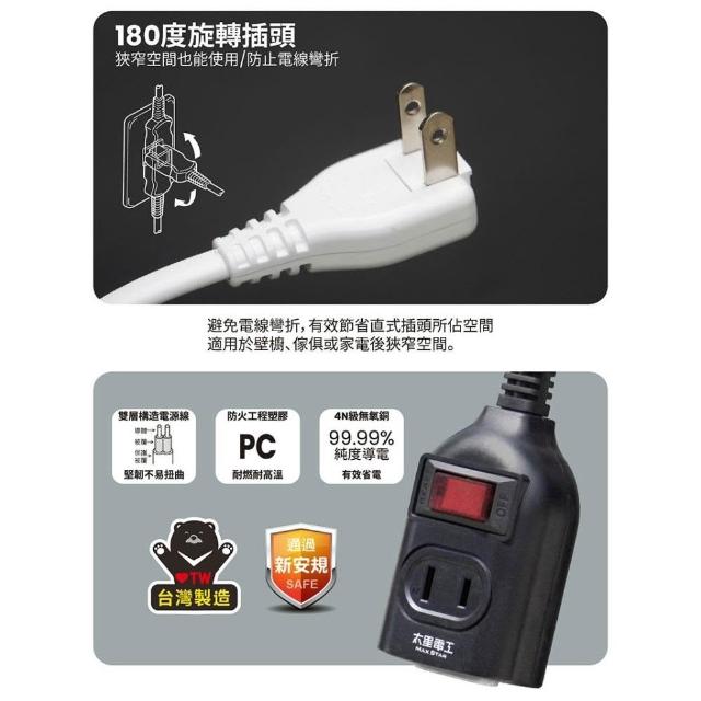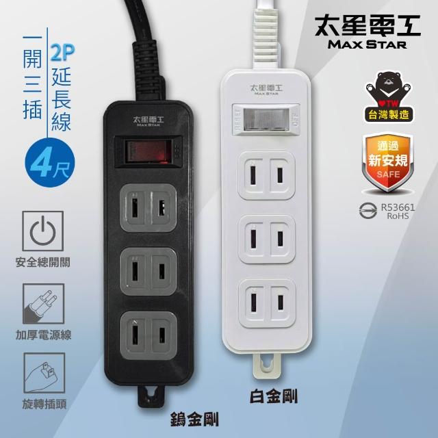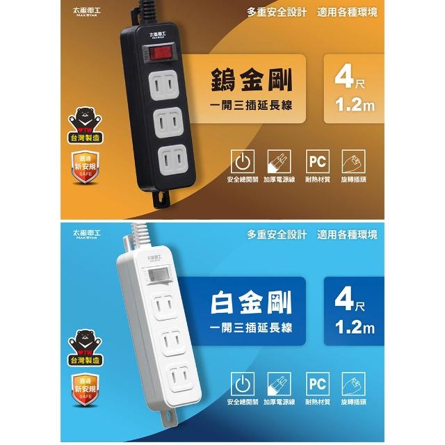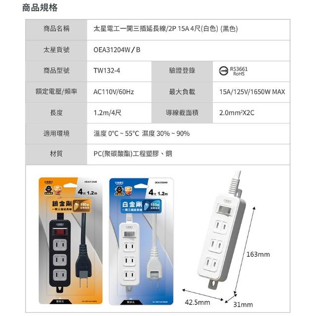 太星電工一開三插延長線/2P /15A/ 4尺(居家辦公∣一線多用∣過載保護)OEA31204