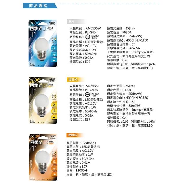 太星電工四季光 LED 磨砂燈泡E27/1W白光/暖白光/琥珀光(節能照明∣氣氛燈泡∣裝飾燈泡∣三色可選)ANB536