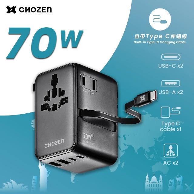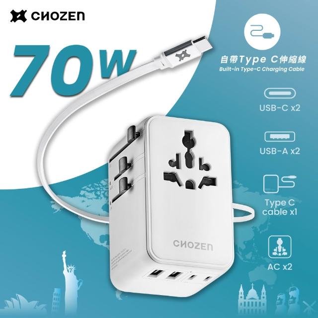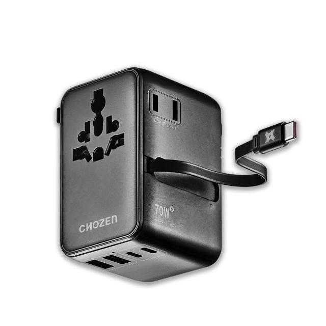 CHOZEN六合一 快充萬國插座|PD70W氮化鎵x自帶快充線|萬國轉接頭 TAC70