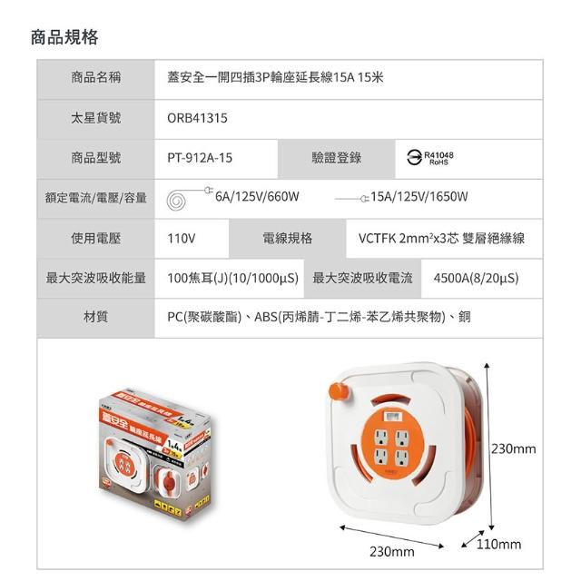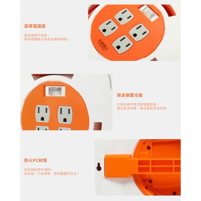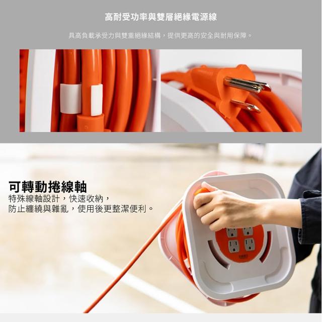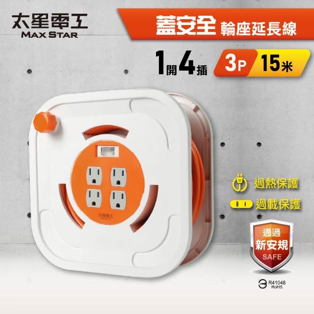 太星電工蓋安全輪座延長線 15米|1開4插|3P|15A|露營/工程/園藝/戶外電源延長