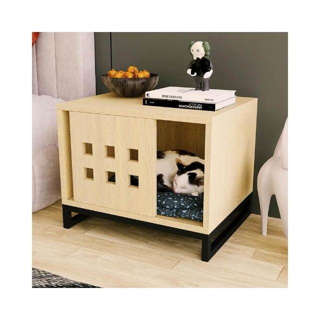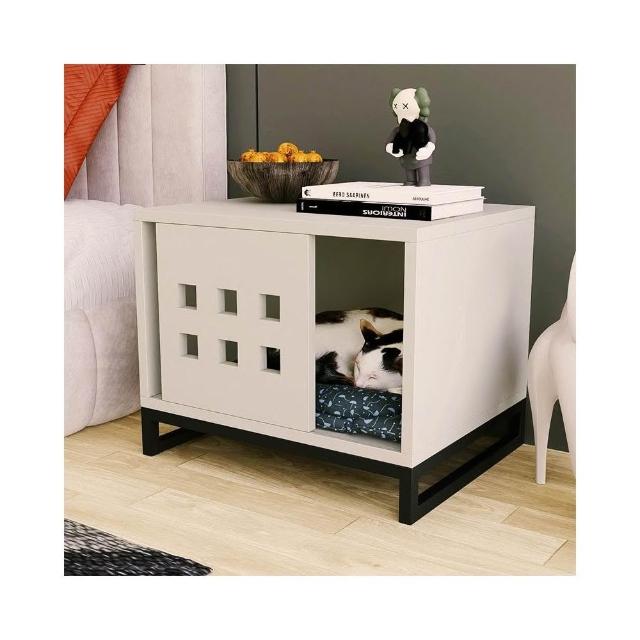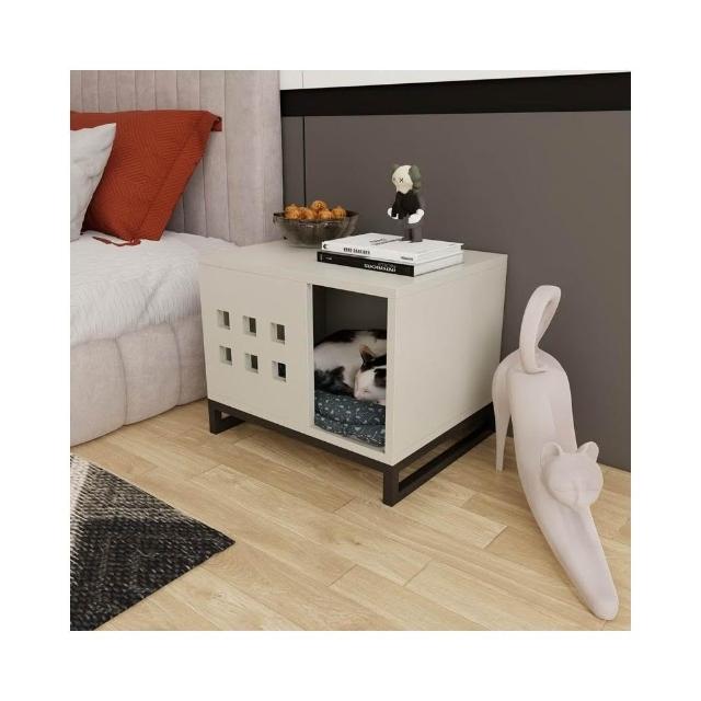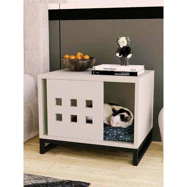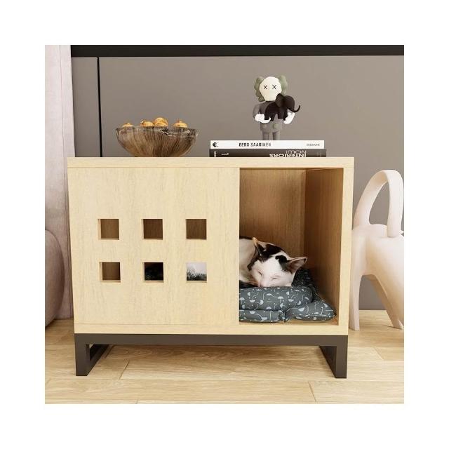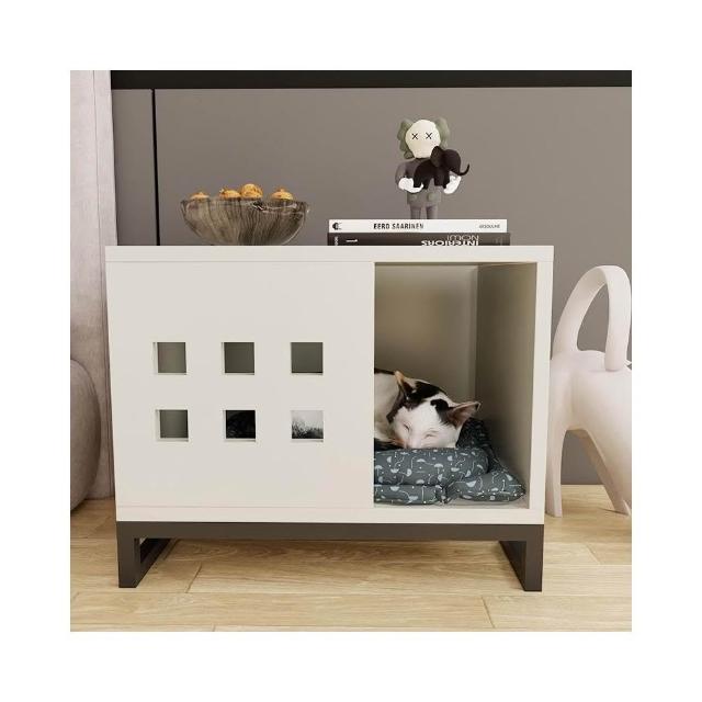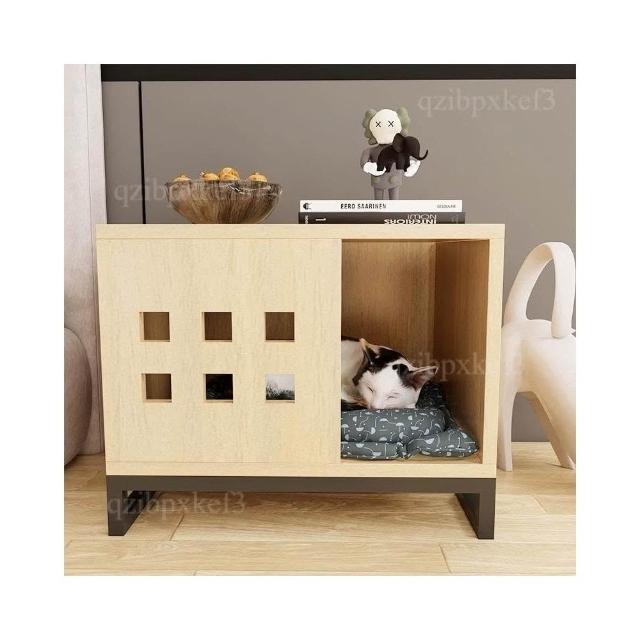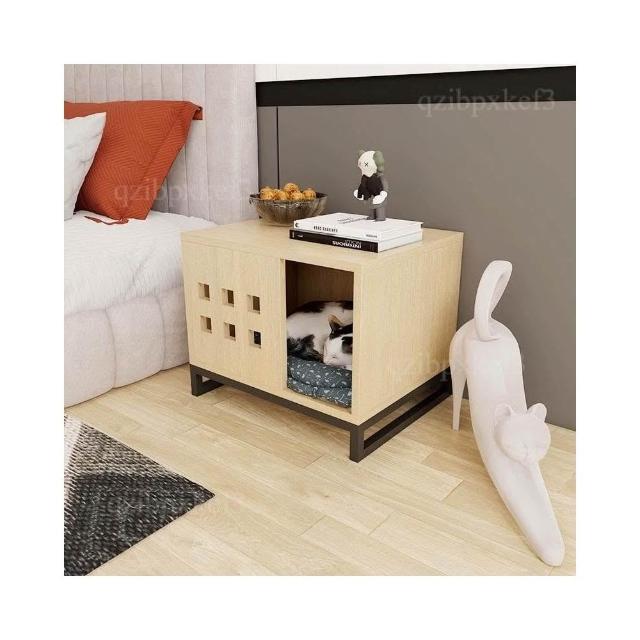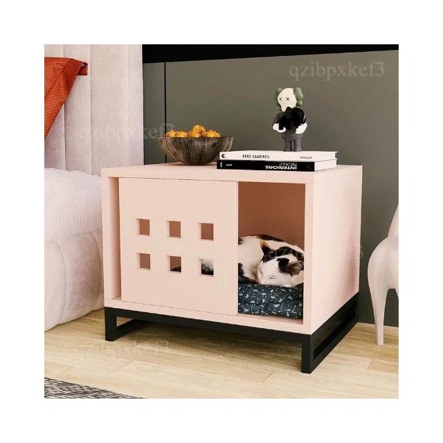 限時優惠 奶油風 卧室收纳柜 人寵共用傢具 半封閉式貓屋 貓窩床頭櫃 实木猫屋柜 床头柜置物架 小型床边柜 猫舍储物柜