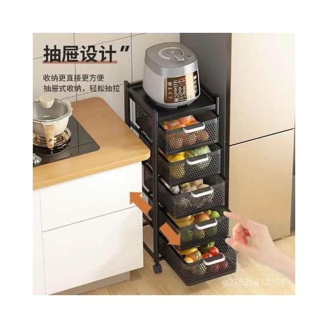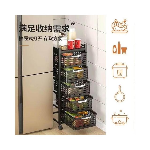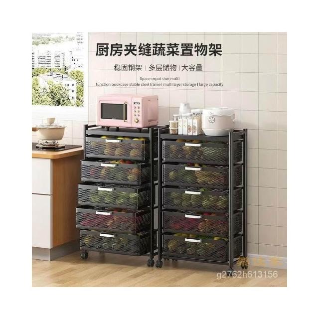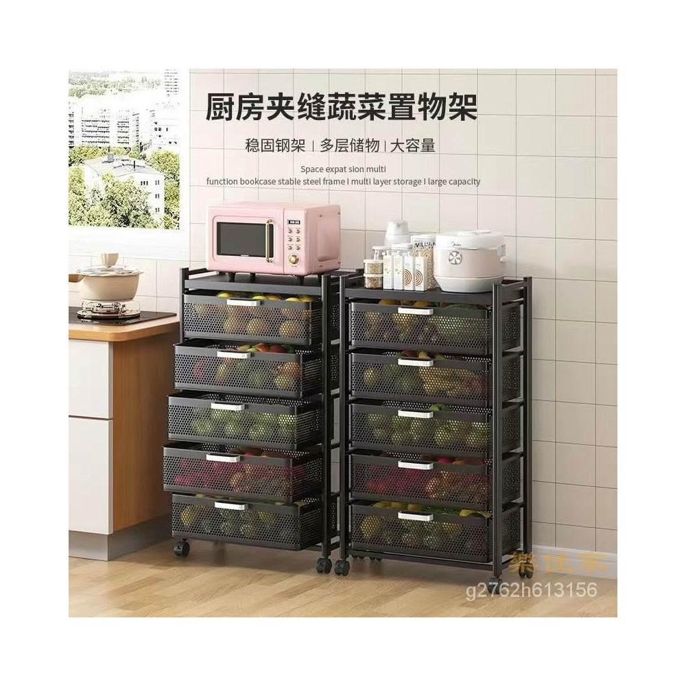 廚房收納 收納架 免安裝廚房蔬菜收納架抽拉式多功能落地夾縫櫃多層蔬菜籃子置物架 層架 廚房架 收納架