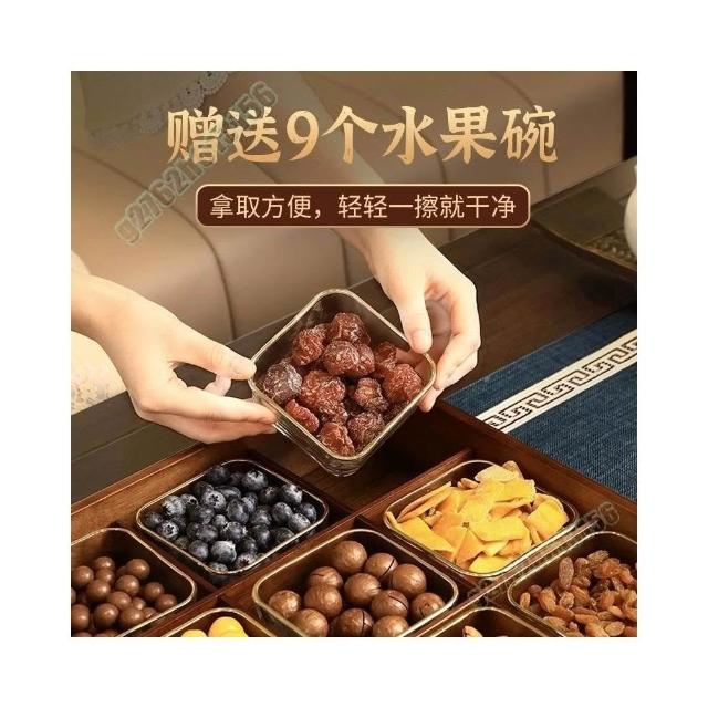 九宫格零食收纳盒 实木中式盘 家用客厅零食盤 高档轻奢糖果盒 新款干果盘 盒零食盤 新年糖果盤 盤盒 擺放盤