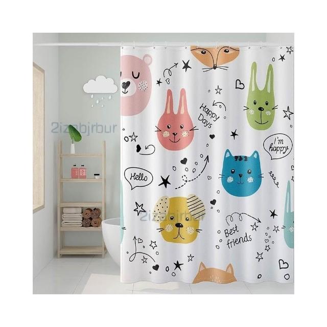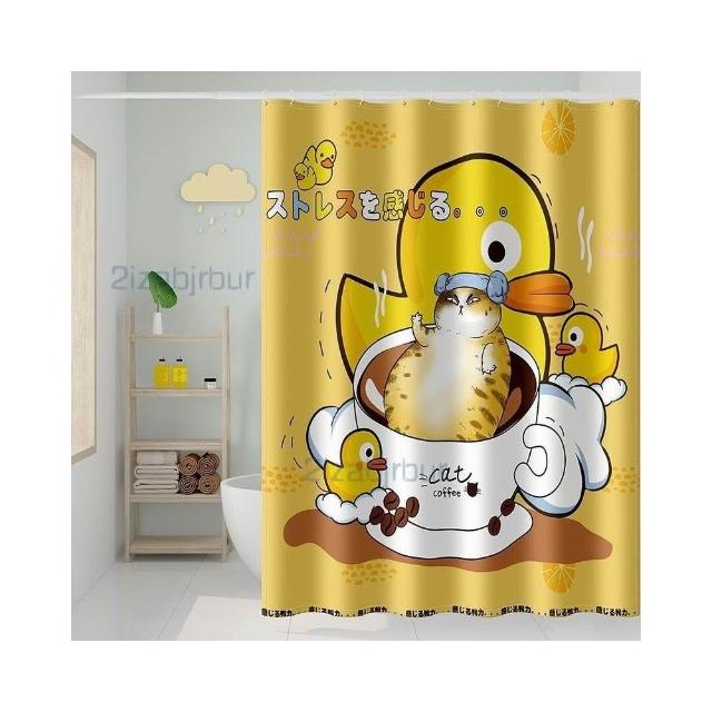 卡通 可愛 浴室 浴簾 防水佈 套裝 免打孔 衛生間 淋浴 洗澡 防黴簾 掛簾 高品質 不易扯壞