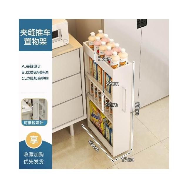 厨房抽拉夹缝置物架 落地冰箱侧隐藏式缝隙推车 卧室门后超窄收纳柜 冰箱側邊櫃 多層窄收納架 大容量收納櫃子