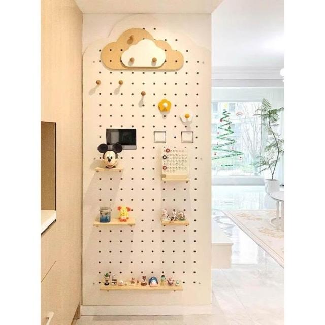 洞洞板衣架 牆上收納 落地衣架 玄關洞洞板定製置物架木質展示收納牆雲朵收納架牆上掛衣架