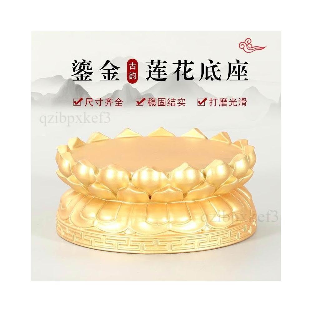 整木圓形鎏金觀音蓮花底座台實木質家用供奉財神佛像關公擺件底座加高佛臺佛像底座神明蓮花座