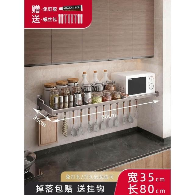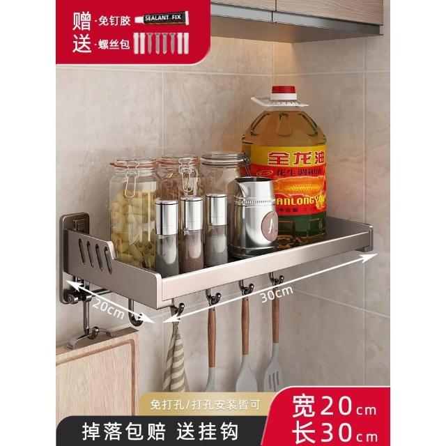 槍灰 廚房置物架 免打孔 壁掛 調料架 加寬 調味品 多功能 家用大全 收納架 厨房 置物架 調味料罐組架子