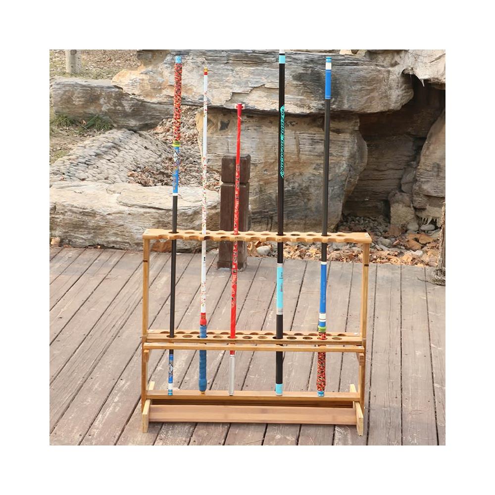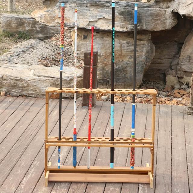魚竿展示架魚桿貨架漁具展架多功能支架竹製擺放架抄網收納架家用架子釣竿收納置竿架收竿架