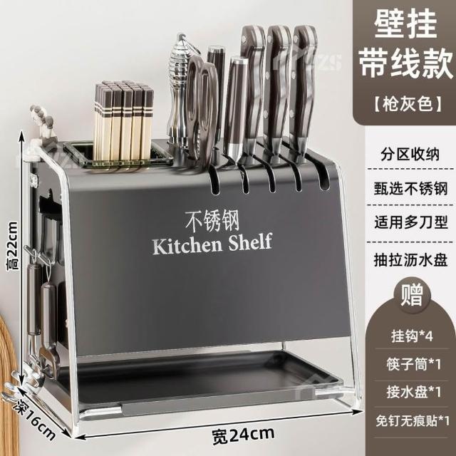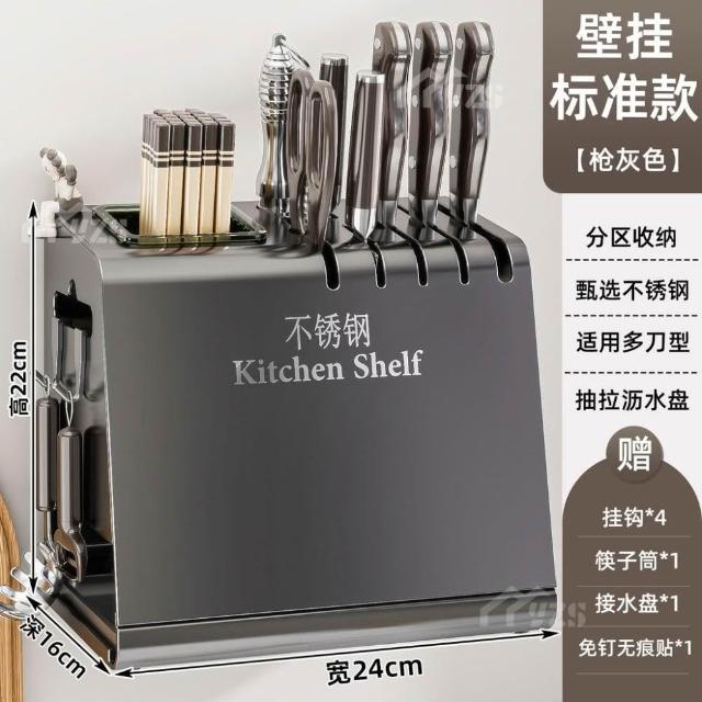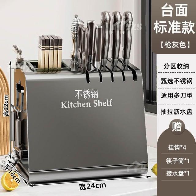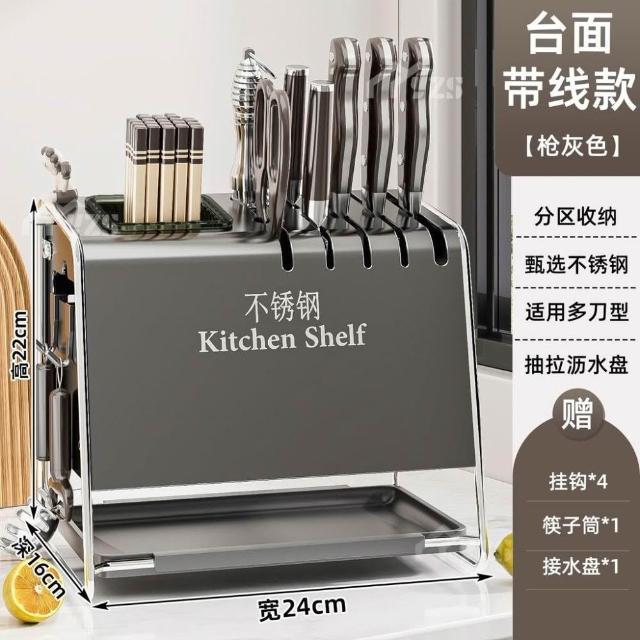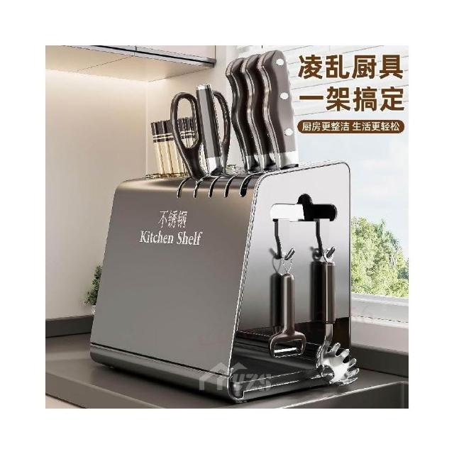 不锈钢厨房刀架置物架台面多功能菜刀座筷子筒刀具筷笼一体收纳盒廚房置物架廚房收納廚具收納