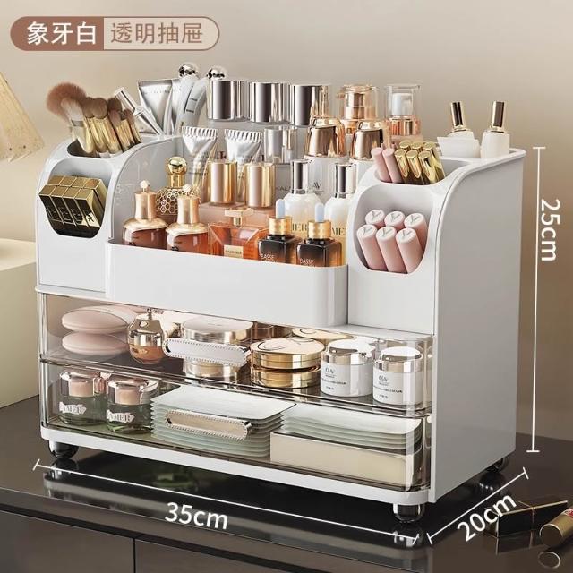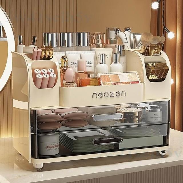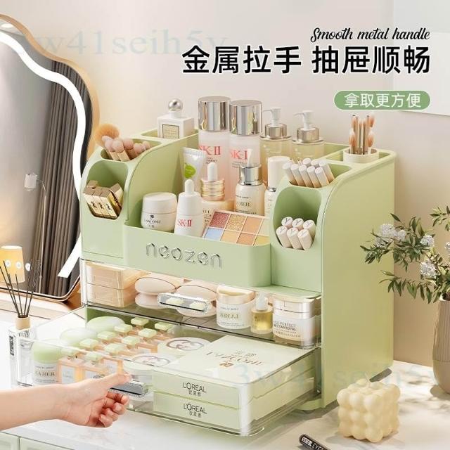 化妆品收纳盒 梳妆台 化妆置物架 桌面护肤品口红粉扑香水盒子 高级感置物架 分格设计 多功能收纳架