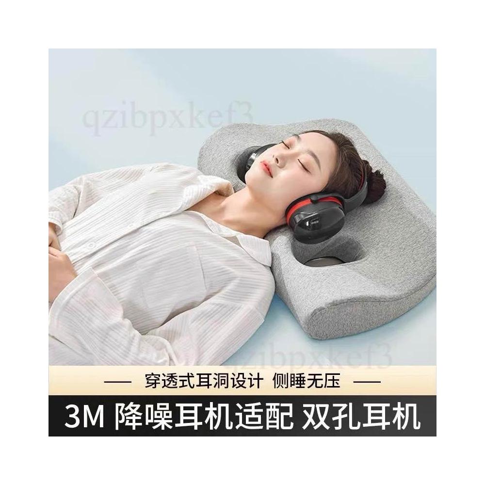 護耳側睡枕頭 雙孔不壓臉 耳朵帶孔記憶棉護頸套 無縫縫合 多功能記憶棉 單人純棉枕頭 高度7-10