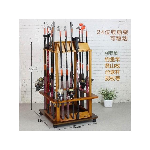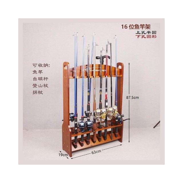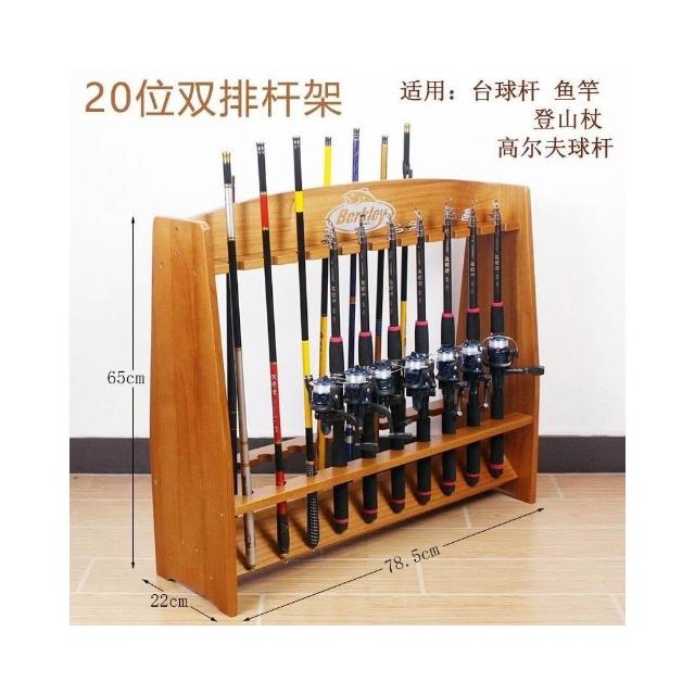 實木儲物架 漁具收納架 雙層置竿架 收竿架 家用魚竿展示架 16位漁具擺放架 立式收納架 海竿手竿貨