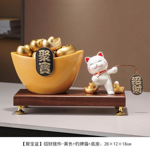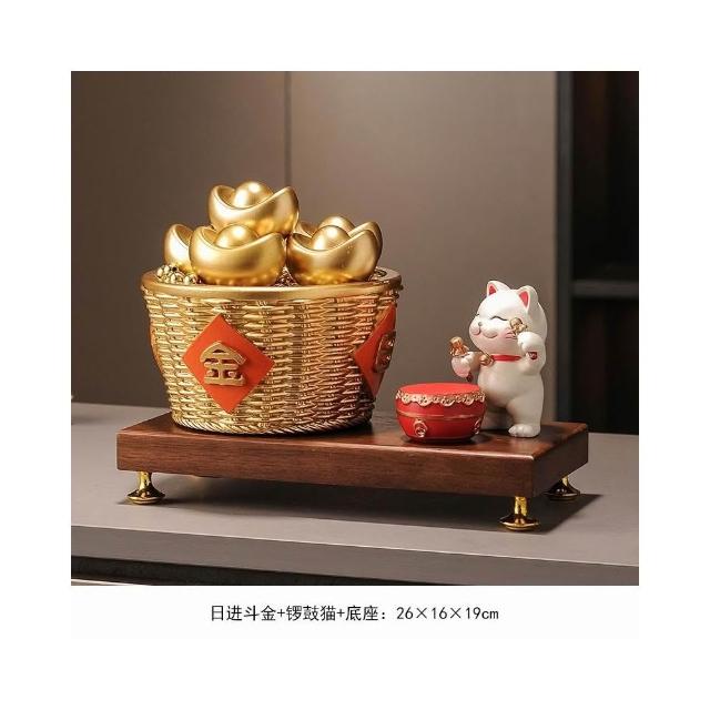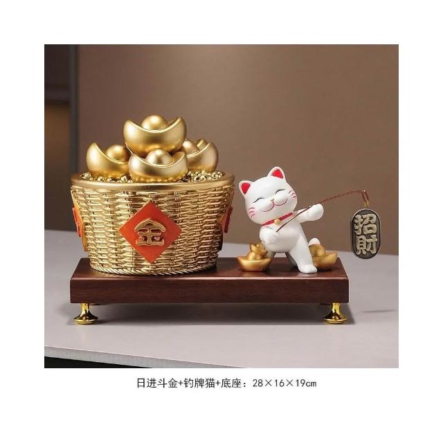 日進斗金擺件 元寶招財貓裝飾 客廳辦公室酒櫃高檔喬遷新居開業禮物 玄關擺件 招財擺飾 入厝禮物 家居
