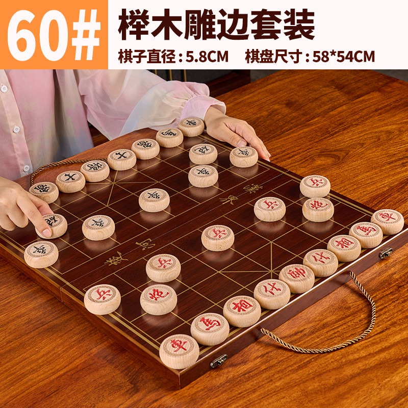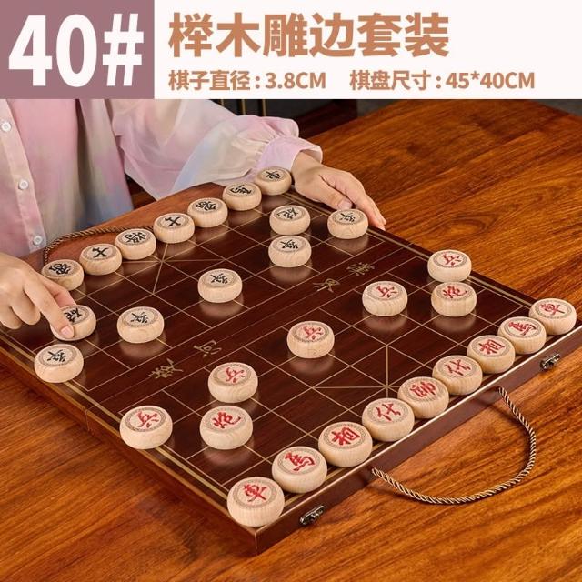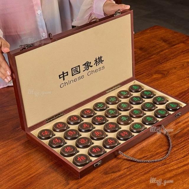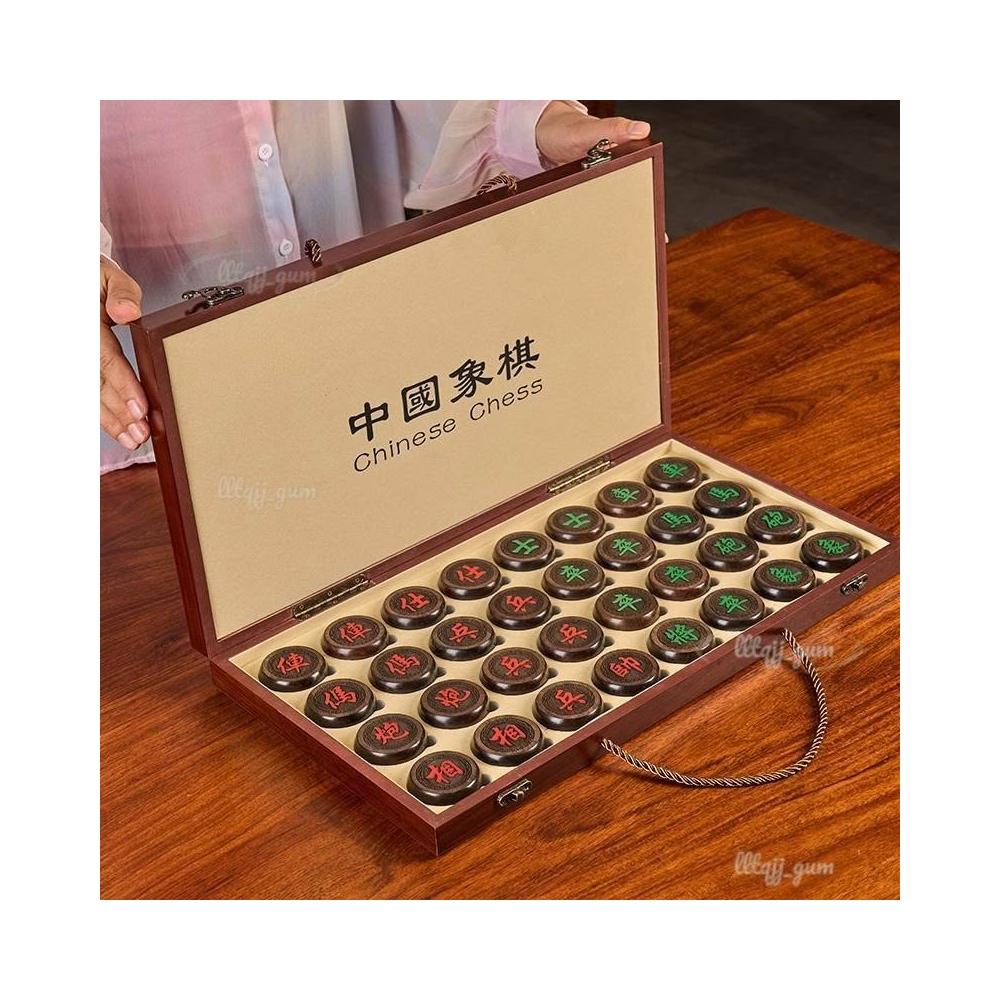 象棋 中國象棋 兒童實木帶木質棋盤 學生成人大號棋桌 便攜式套裝黑檀棋 可折疊象棋桌 多用象棋棋盤桌
