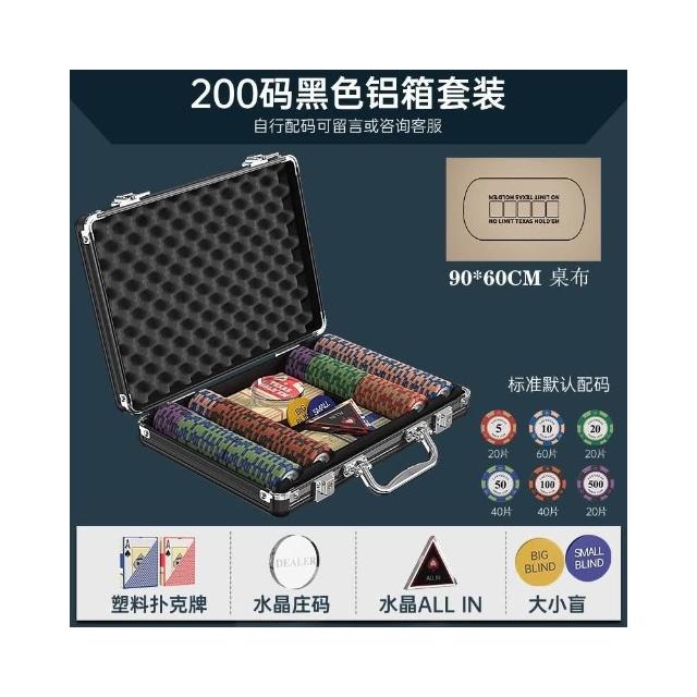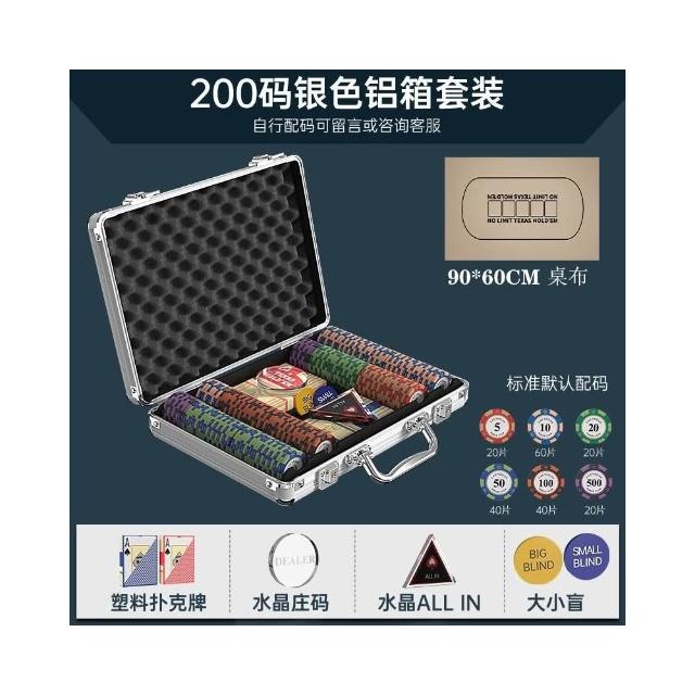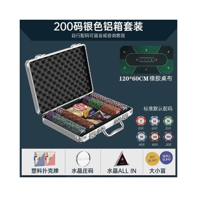 德州撲克籌碼套裝 皇冠黏土麻將棋牌室籌碼 專用籌碼幣 高檔鋁箱德撲桌布幣