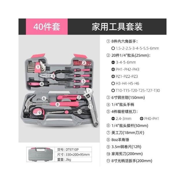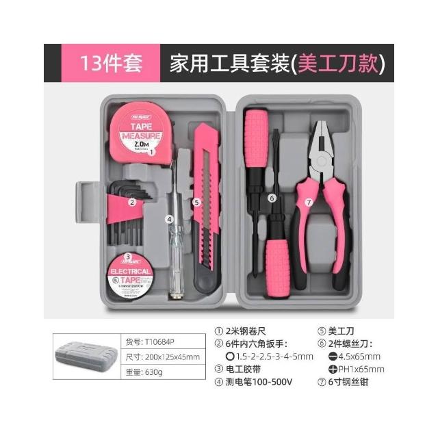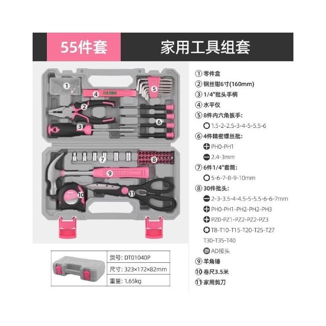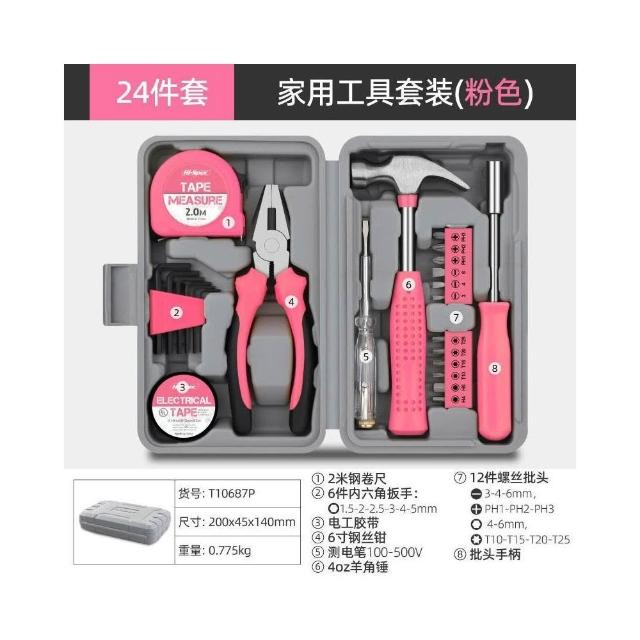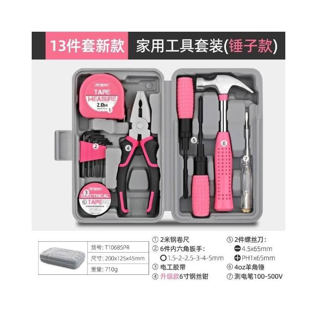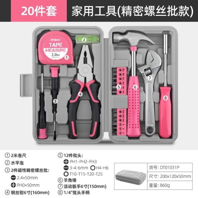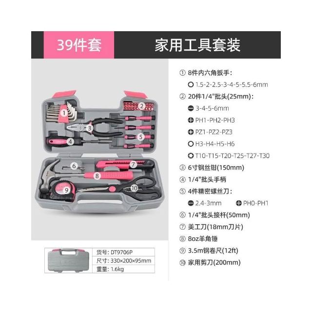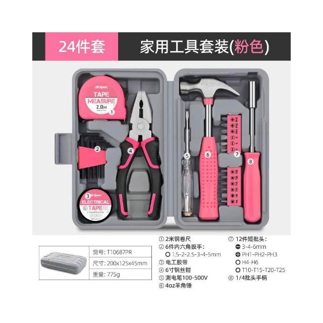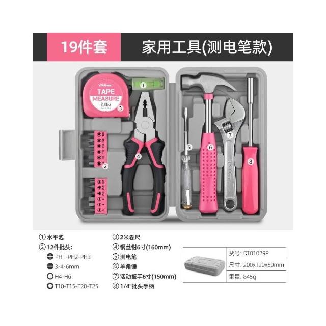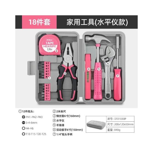 家用工具箱 五金扳手螺丝刀钳子 日常家庭多功能维修粉色套装 萬用工具箱 維修工具箱 工具組 起子 工