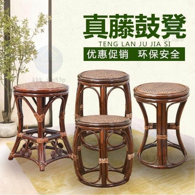 真藤藤編鼓凳 藤凳子 小藤椅子 圓凳 園凳 酒店荼樓矮凳子 休閑凳