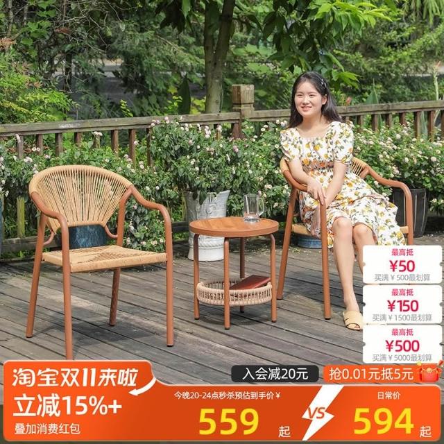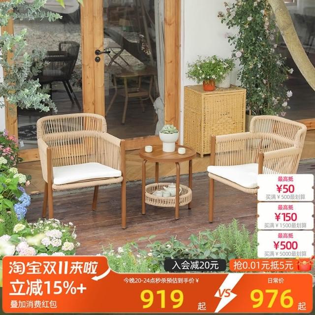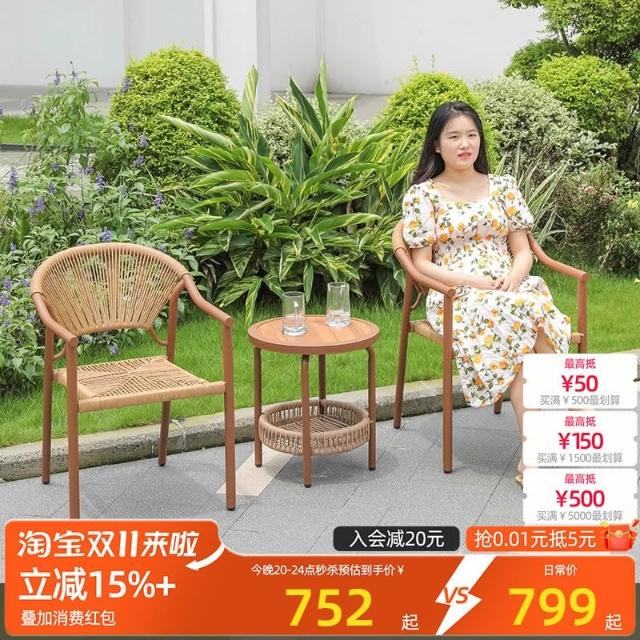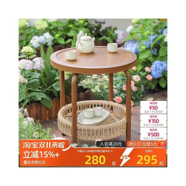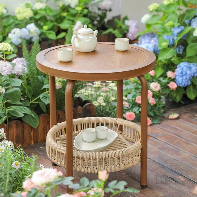 戶外茶桌 室外露台藤編茶几 花園庭院編藤茶幾 客廳家用桌子 陽台休閑喝茶桌椅組合 簡約茶桌 陽臺茶几
