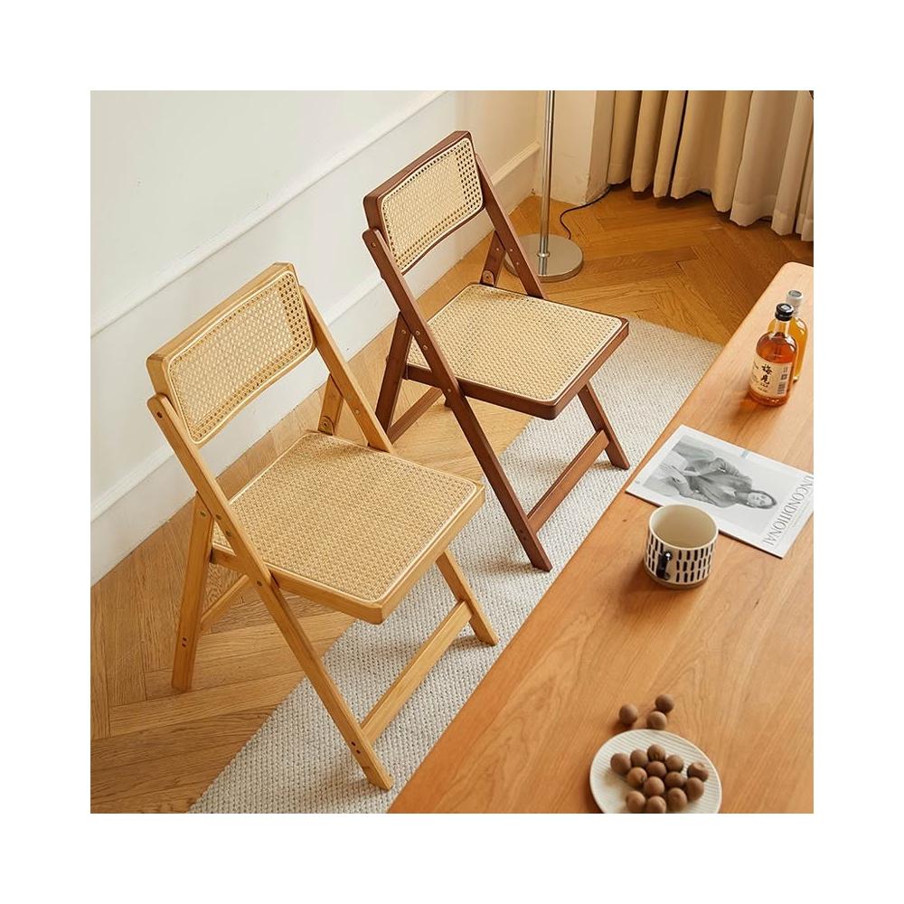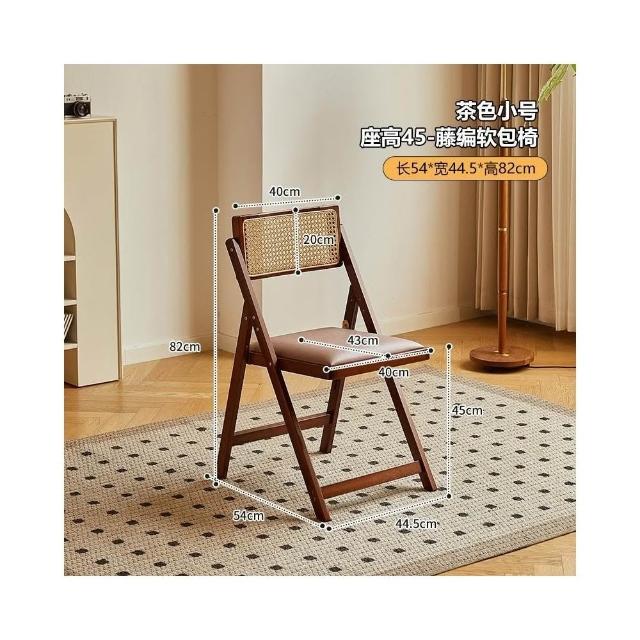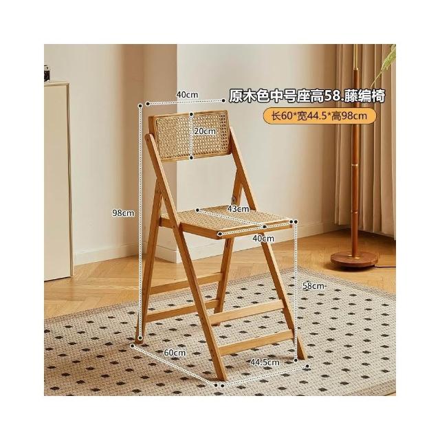 藤編椅 靠背椅 藤椅 侘寂風藤編椅子家用折疊椅楠竹實木凳子靠背餐椅北歐原木風吃飯椅