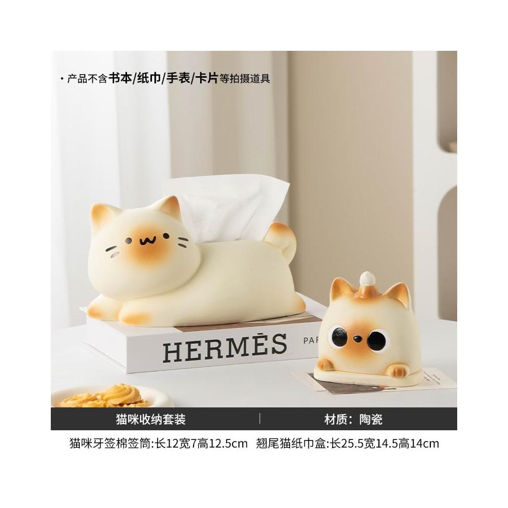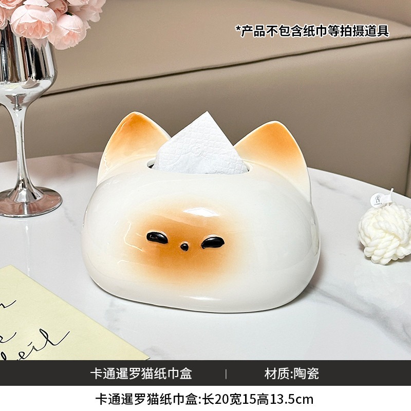 躺平貓創意紙巾盒 餐巾紙盒 家用客廳桌面紙抽盒 輕奢高檔 紙巾收納盒