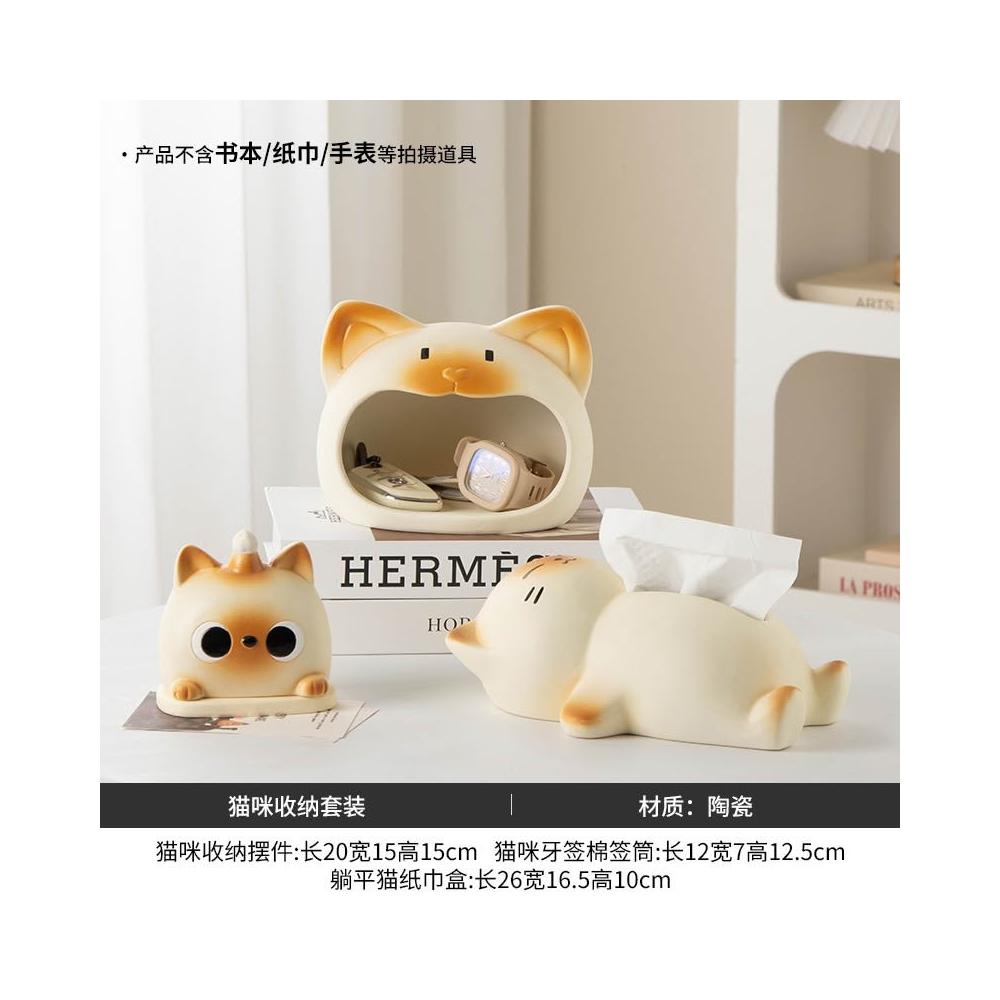 躺平貓創意紙巾盒 餐巾紙盒 家用客廳桌面紙抽盒 輕奢高檔 紙巾收納盒