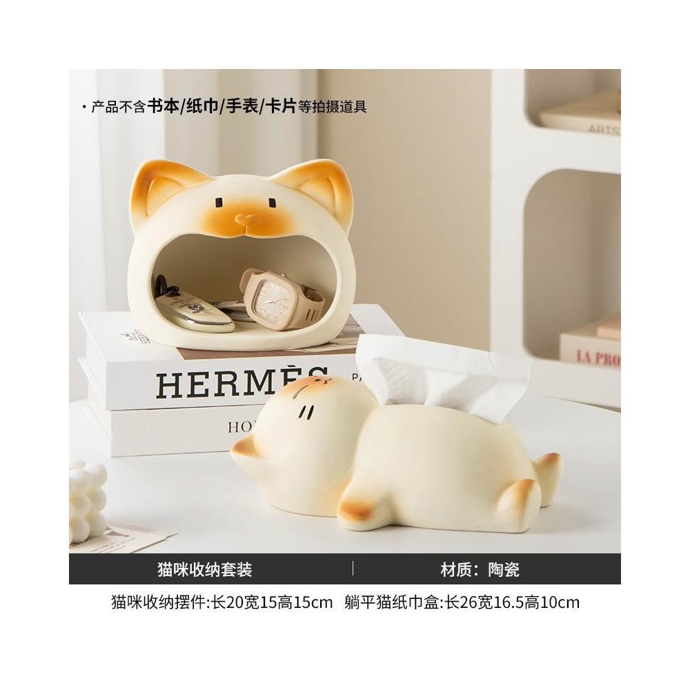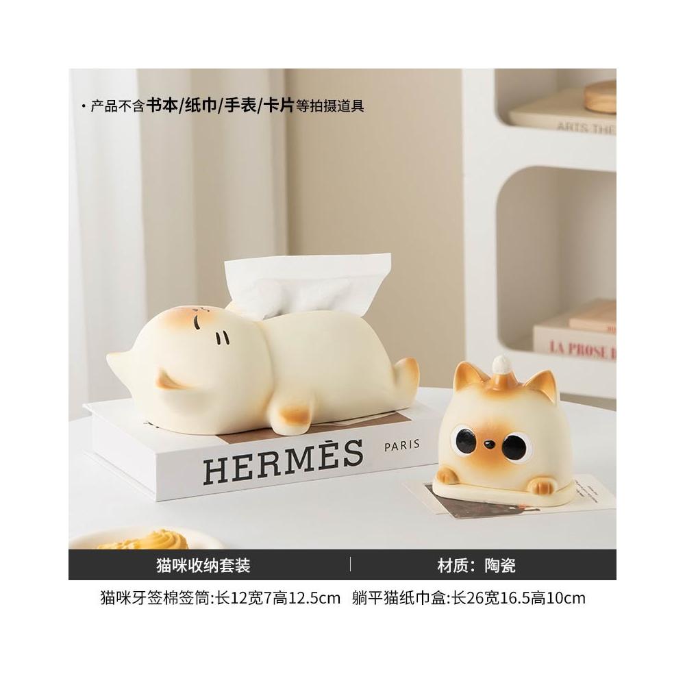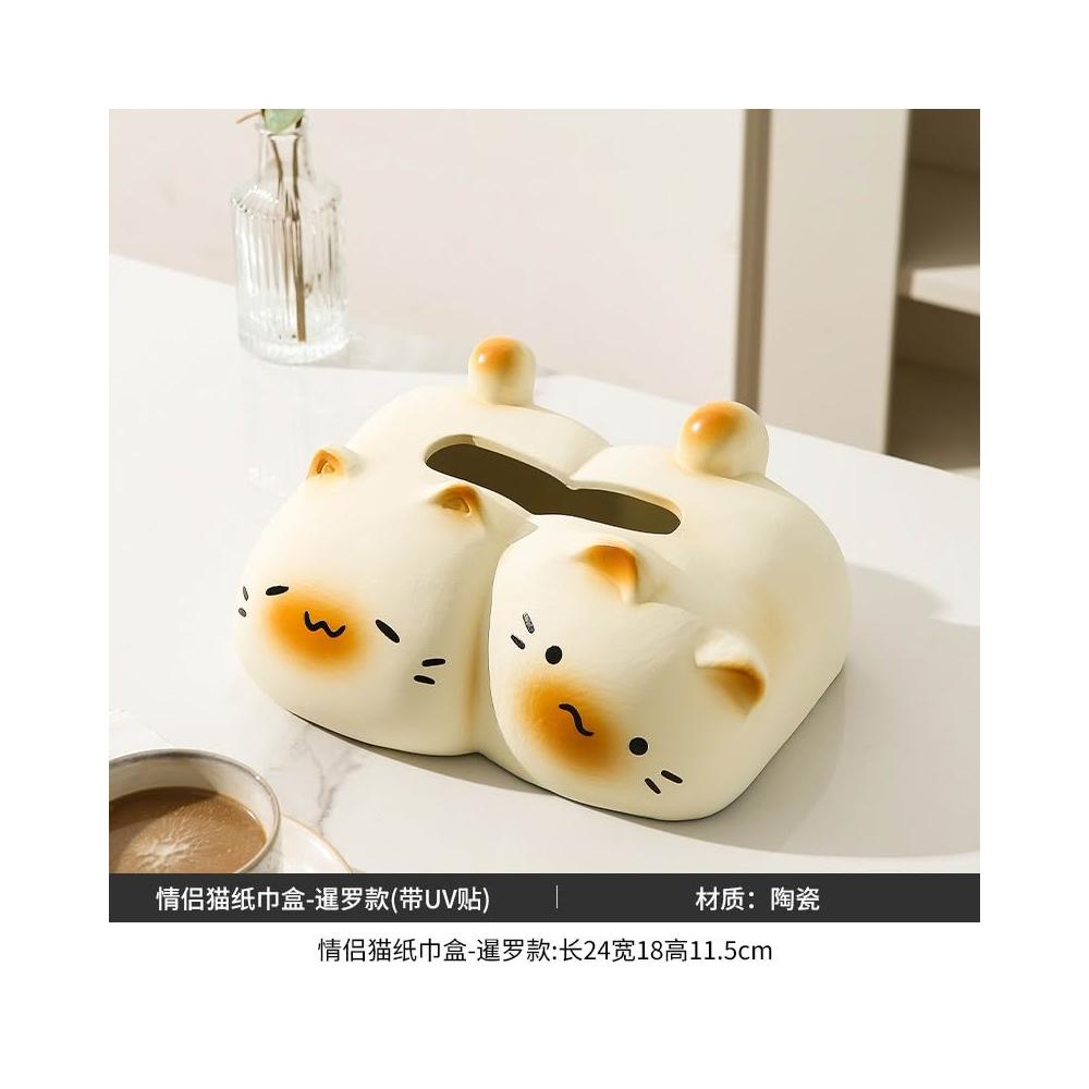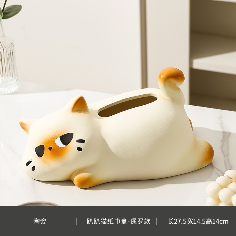 躺平貓創意紙巾盒 餐巾紙盒 家用客廳桌面紙抽盒 輕奢高檔 紙巾收納盒
