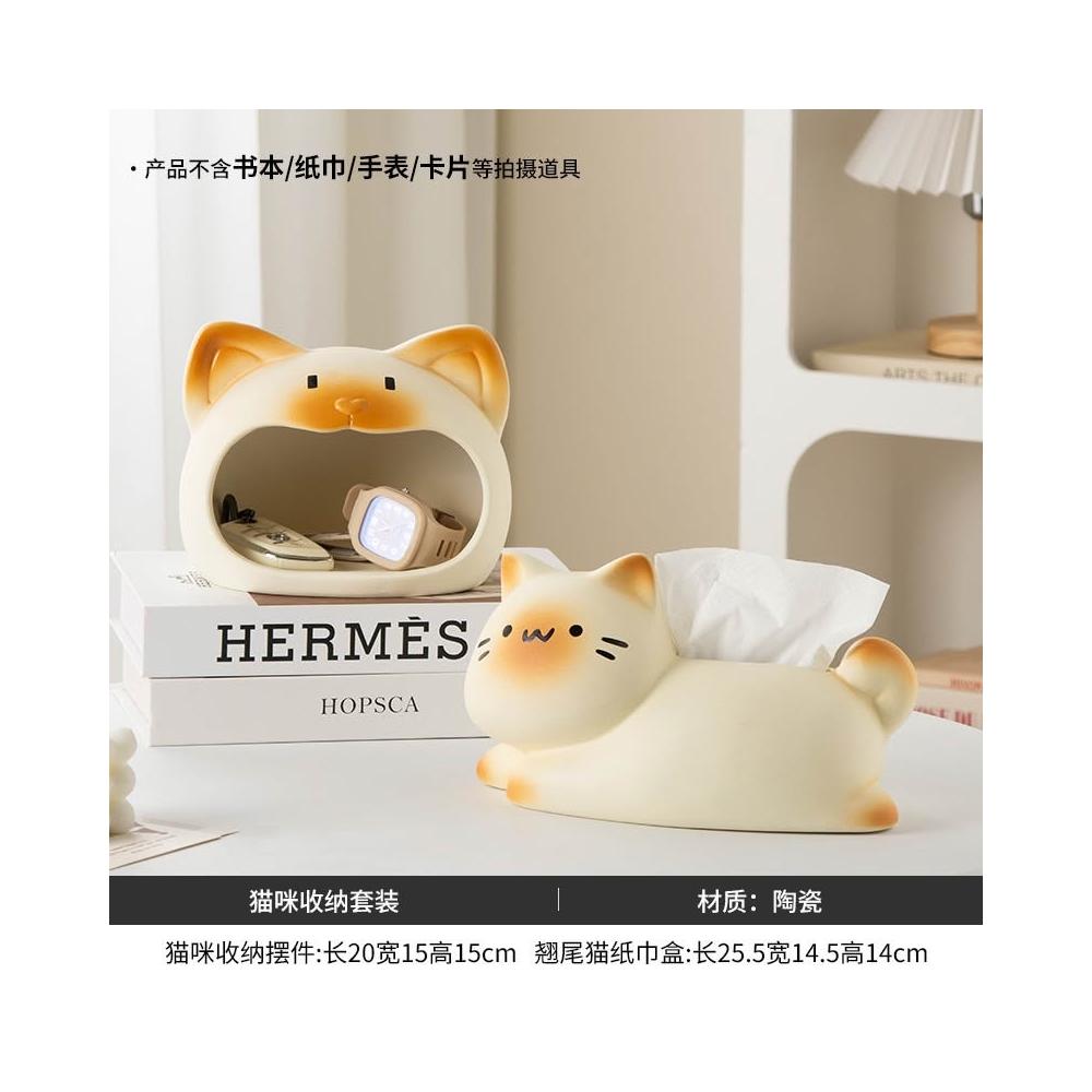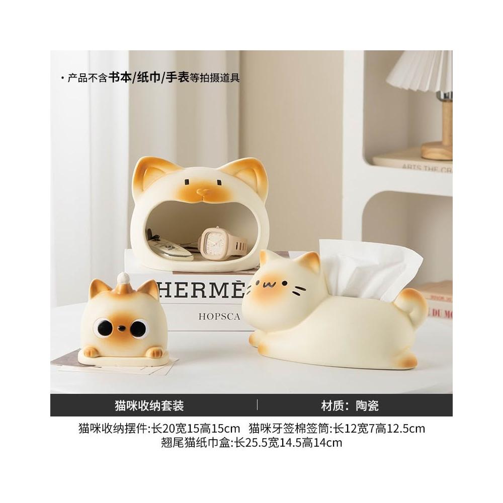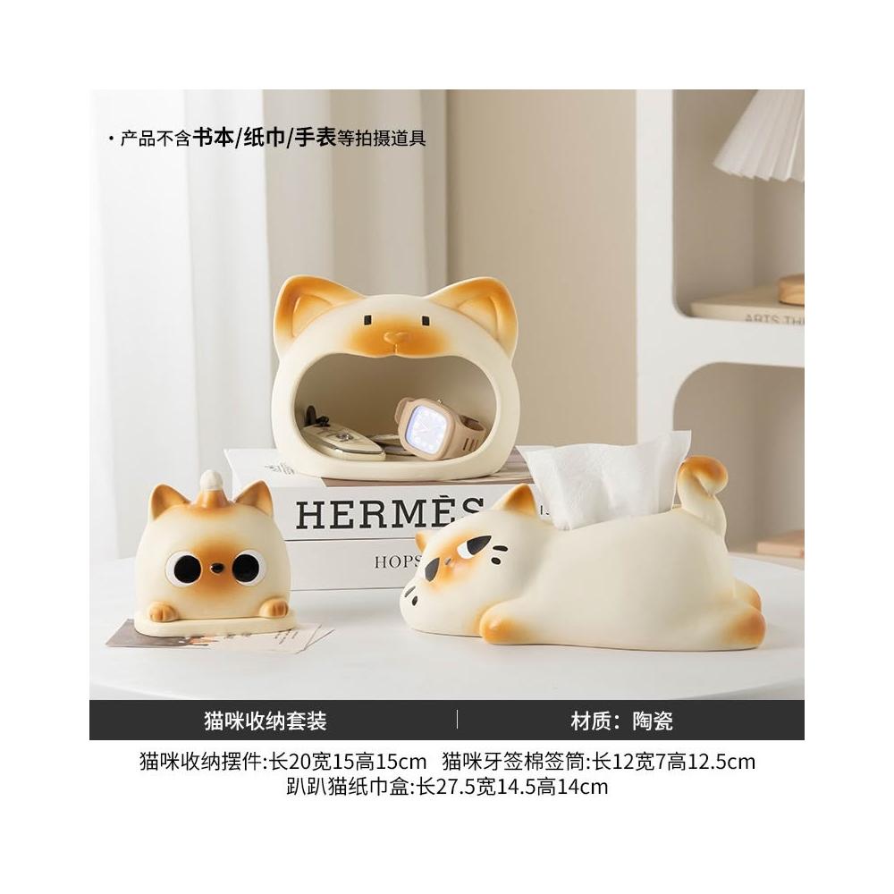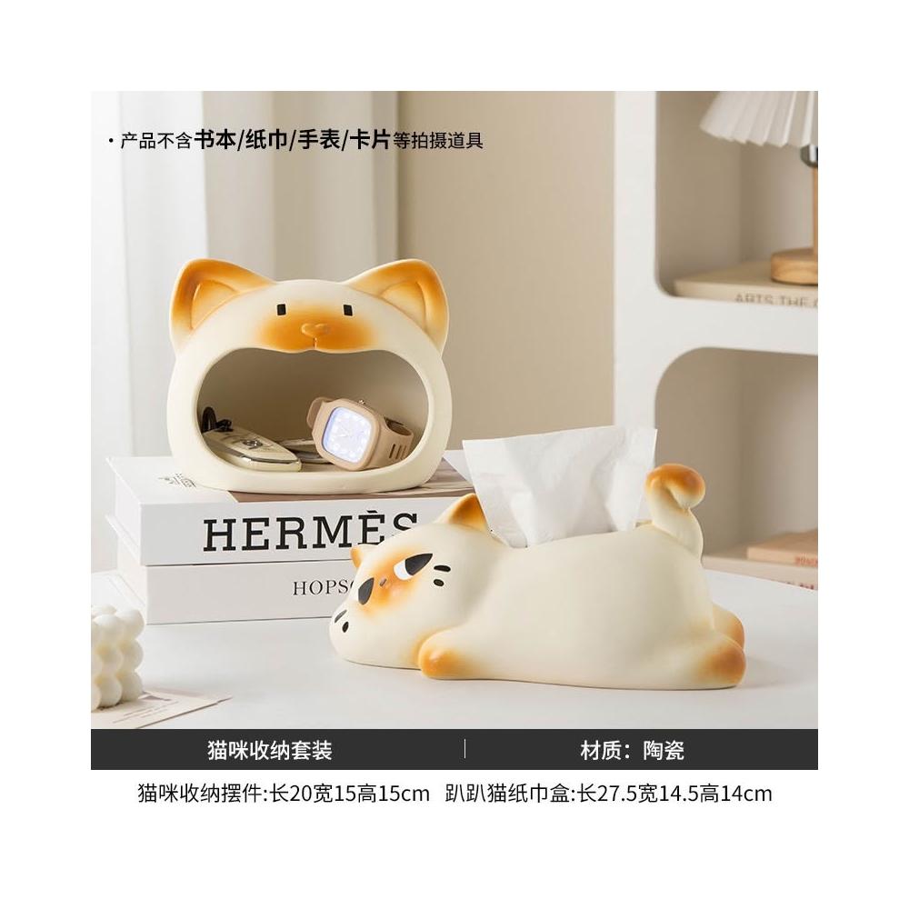 躺平貓創意紙巾盒 餐巾紙盒 家用客廳桌面紙抽盒 輕奢高檔 紙巾收納盒
