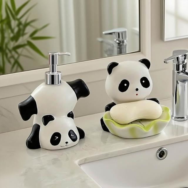 創意可愛熊貓瀝水肥皂盒 香皂盒 衛生間洗手台皂液瓶 分裝瓶 裝飾擺件 日式 復古 北歐 侘寂風