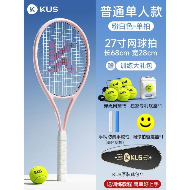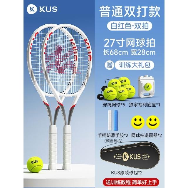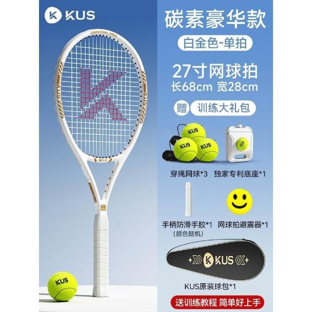 碳素網球訓練器 超輕回彈碳素球拍套裝 單人打帶線套裝 回彈自練神器 初學者網球拍套裝 網球球拍 帶綫
