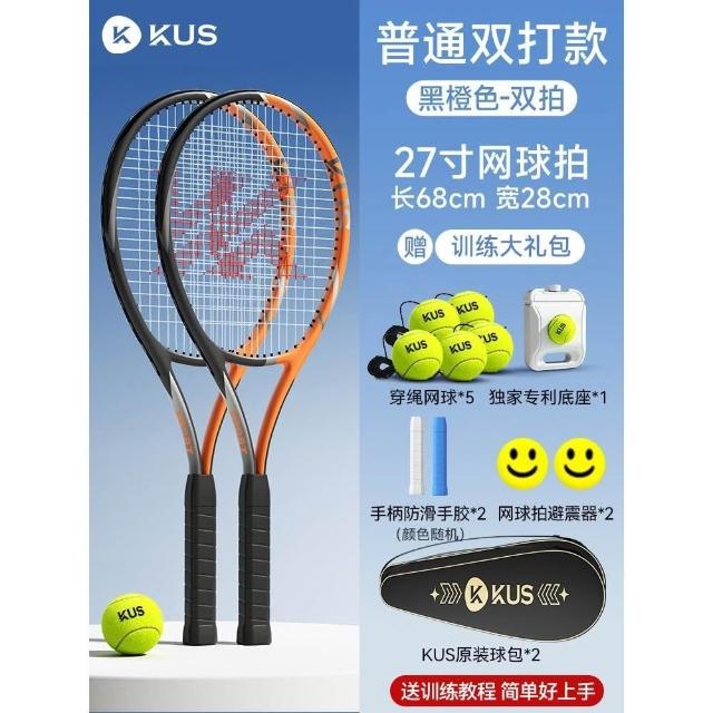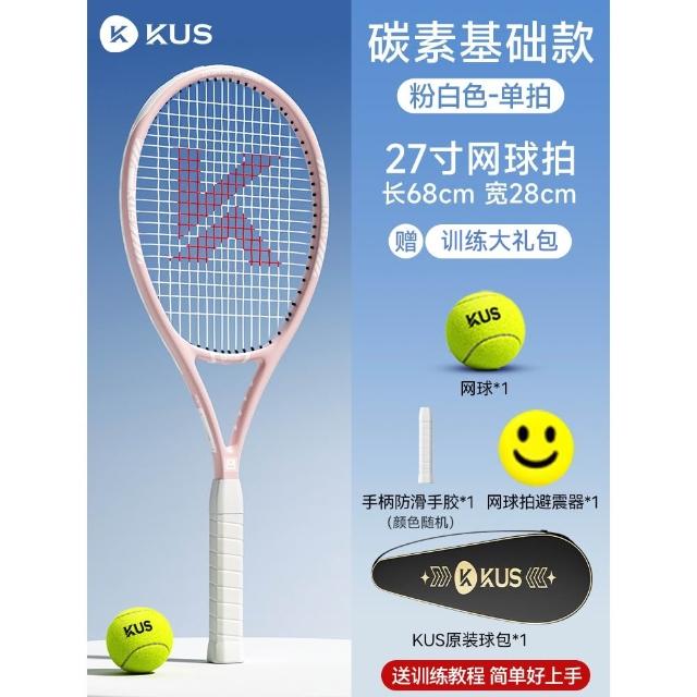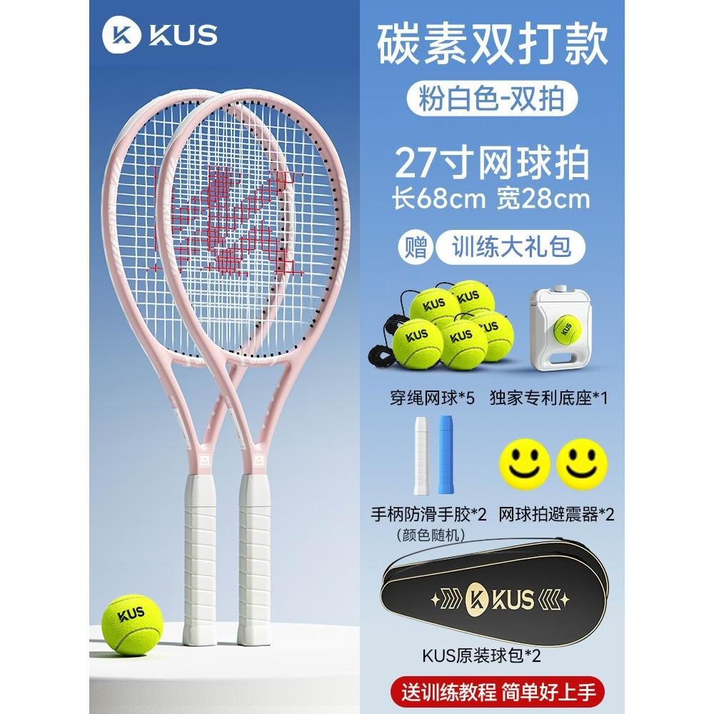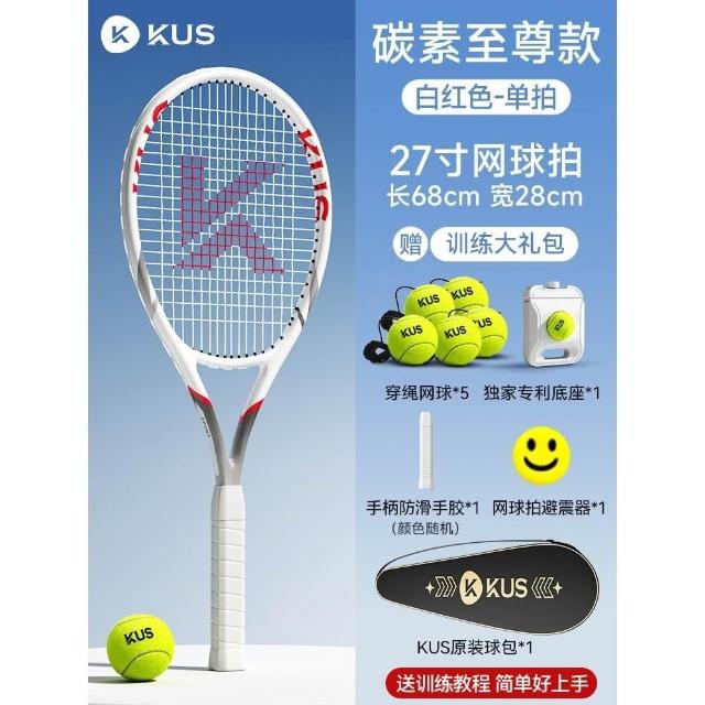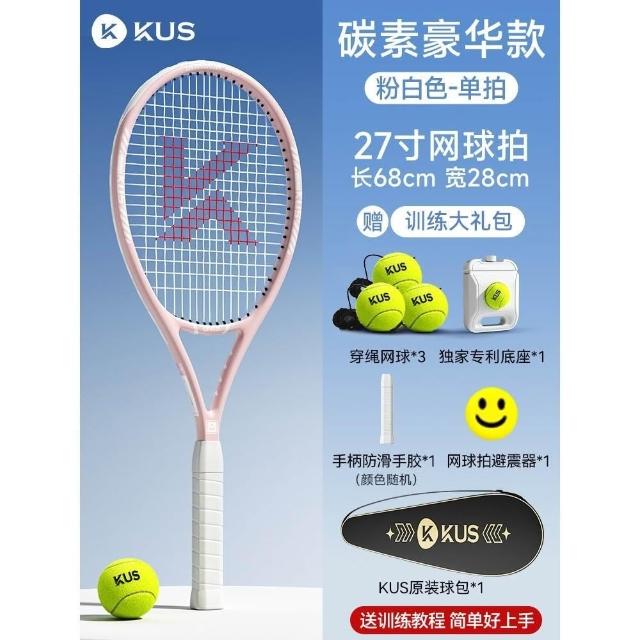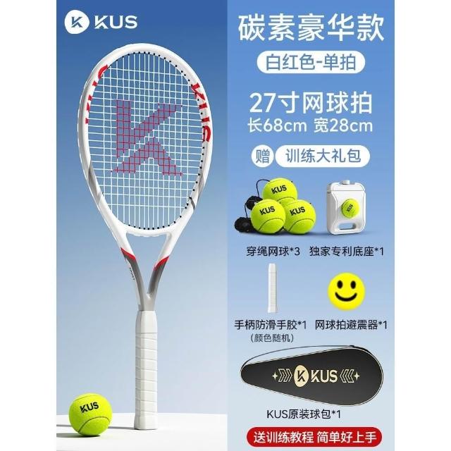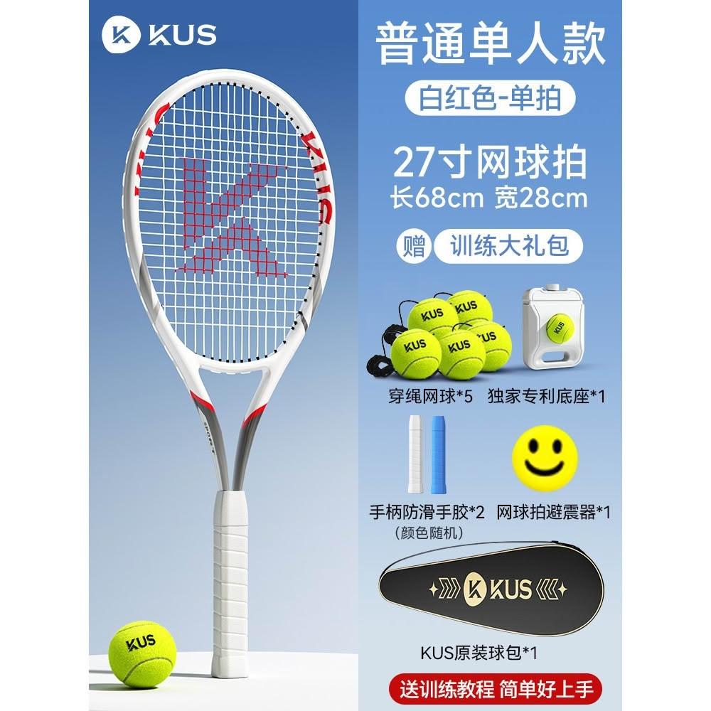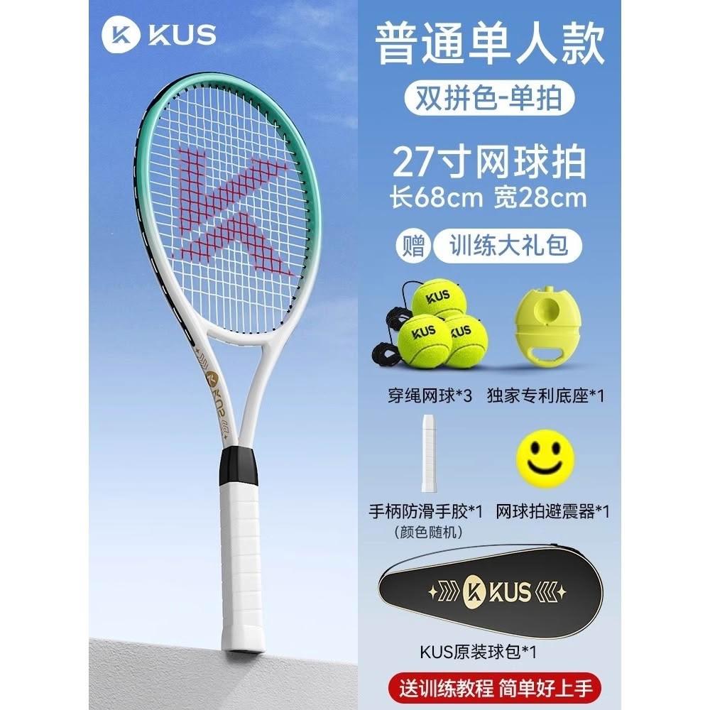 碳素網球訓練器 超輕回彈碳素球拍套裝 單人打帶線套裝 回彈自練神器 初學者網球拍套裝 網球球拍 帶綫