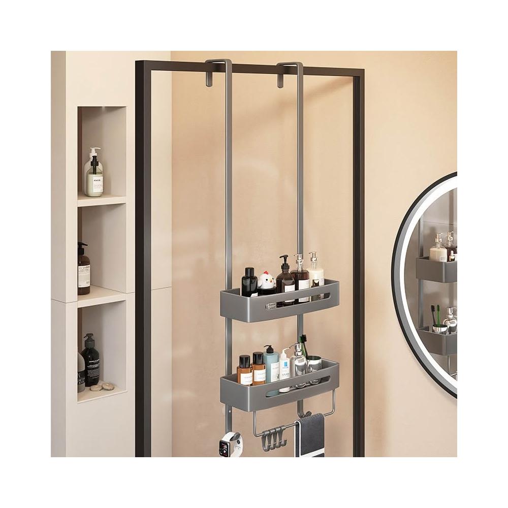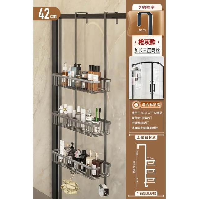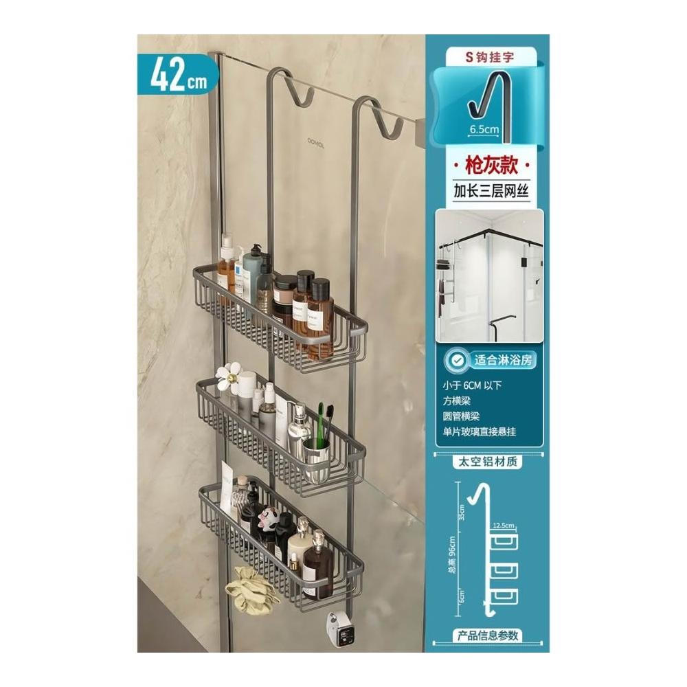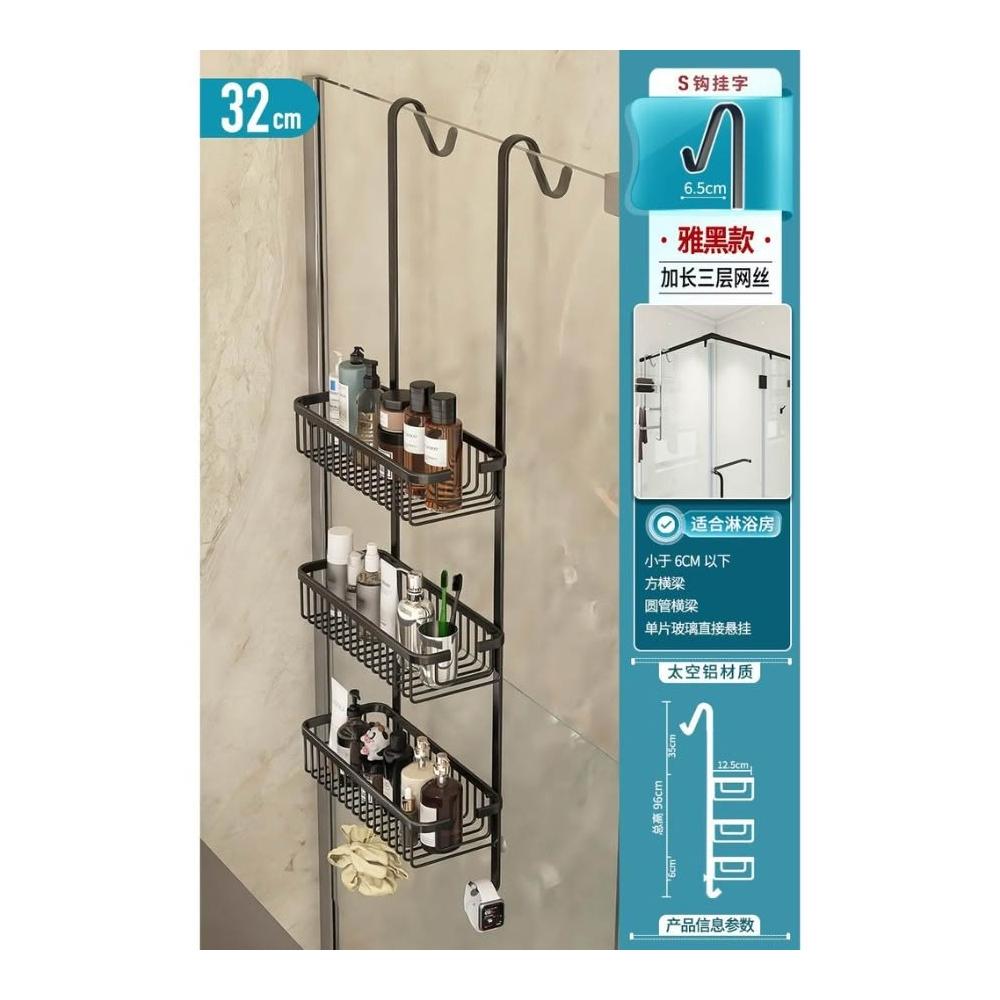 浴室置物架衛生間玻璃門掛架收納廁所架子毛巾架淋浴房掛籃懸掛式