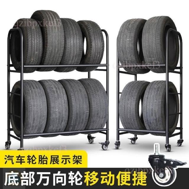 可開發票🧾4店輪胎店貨架 輪胎展示架 輪胎輪轂架子 帶輪子架子 汽車維修架子 店車間移動架 摩托車
