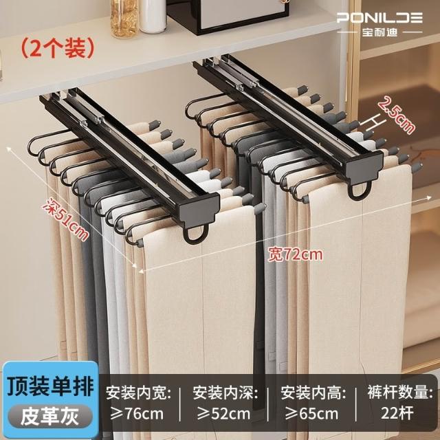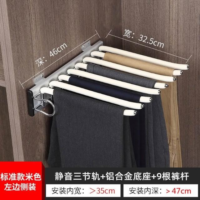 衣櫃側裝褲架 家用伸縮滑軌褲抽 多功能抽拉式頂裝掛褲子架 柜內五金抽拉架