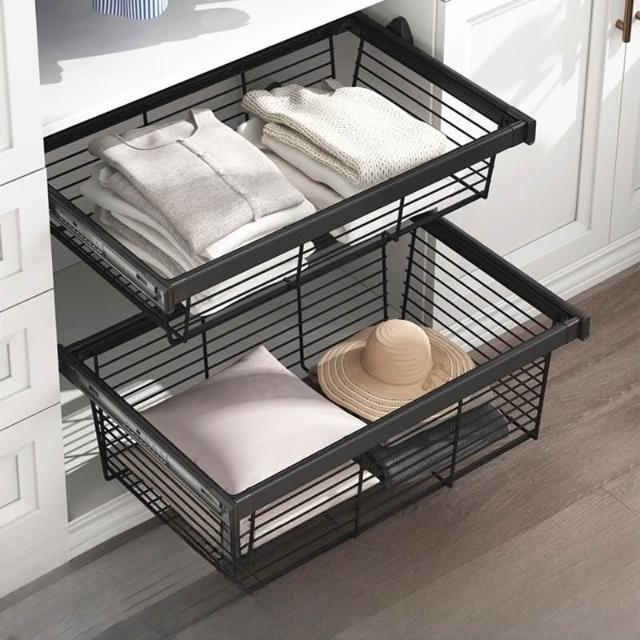 衣櫃拉籃抽屜式褲架 伸縮家用衣櫥推拉褲抽籃子 衣帽間收納內置五金配件籃