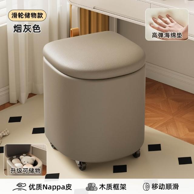 化妝凳 可儲物梳妝台凳子 女生臥室奶油風旋轉凳 萬向輪美甲椅方凳矮凳