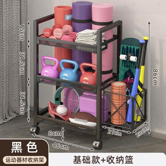 置物架 收納架 家庭健身器材收納架 運動健身器材收納架家用籃球架壺鈴啞鈴架泡沫軸瑜伽墊置物架帶輪
